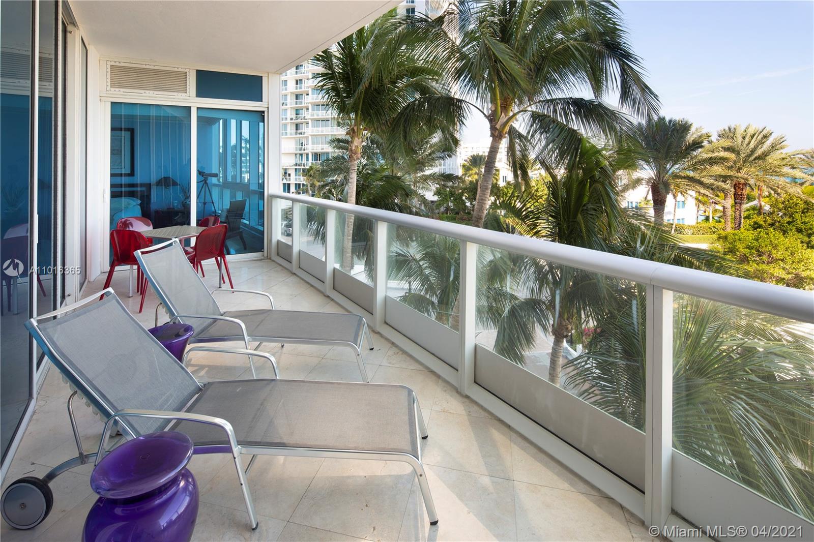 A spacious lower floor apartment at the Continuum South Beach, a gated oceanfront community in Miami Beach. This 2/2.5 apartment has an open floorplan and a grand terrace with garden-type views that overlook the pool and ocean. Feels like a townhome. The apartment has ten foot ceilings, an open kitchen design and modern features and finishes. Continuum is a full-service private community with over 12 acres of resort amenities, a private beach club, three pools, tennis courts, a restaurant and a world-class health and fitness pavilion. Continuum sits at the south point of Miami Beach, in the SOFI (South of Fifth) district.