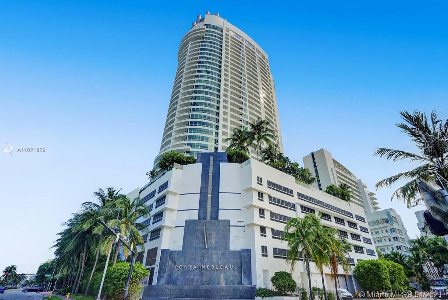 Impeccable Junior Suite on a high floor with ocean & pool views at The Fontainebleau Tower III. Enjoy full service, vacation-style living in a furnished turnkey unit with king size bed and sleeper sofa. The Fontainebleau Resort offers luxury amenities on 22 oceanfront acres including award-winning restaurants, a night club, spa & state-of-the-art fitness center. Maintenance includes: AC, local calls, electricity, valet + daily free breakfast in the owners lounge. This unit is currently enrolled in the hotel rental program and financial statements are available upon request. Showings are available by appointment.