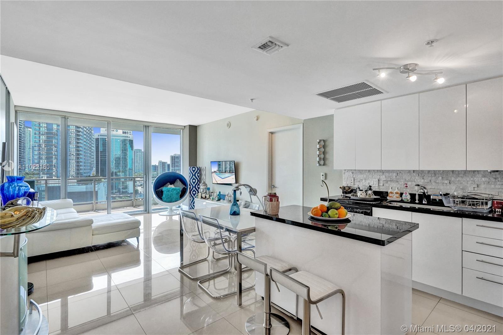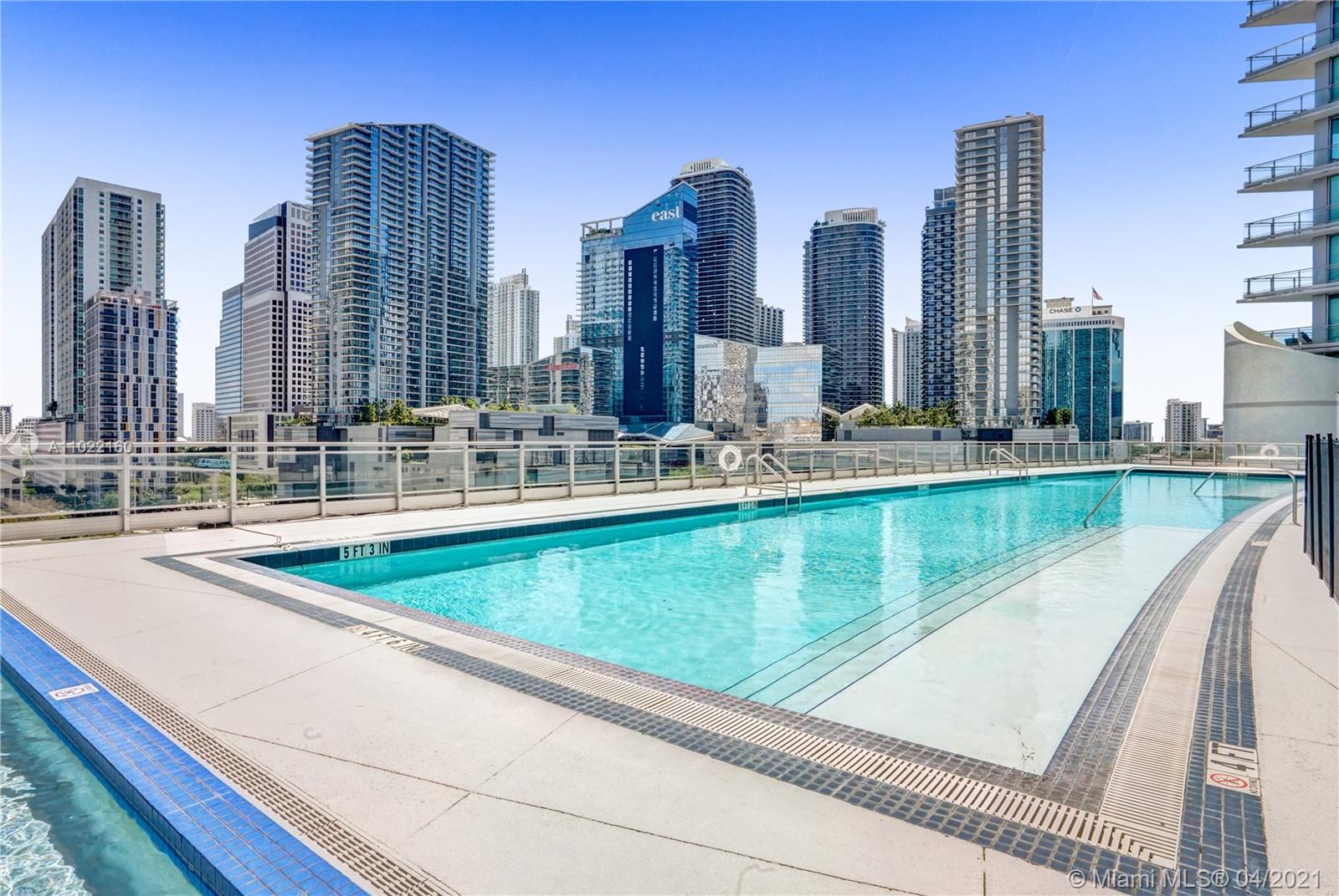 Rarely available, the best line at the Mint at the River Front. Amazing 2 bed 2.5 baths + den (den can be converted into a 3rd bedroom), large master bedroom, marble floors, massive balcony (236 Sqft), beautiful views of the river, and Brickell City Center. Stainless steel appliances, granite countertops, and Italian kitchen. Parking space conveniently located near the elevator. Two gatted guard entrances. Exclusive 5-star amenities including fitness center, bar, pool, business center, active room, 24-hour concierge, valet parking. Close to dining, shopping, minutes from beach, airport, and Financial District Brickell