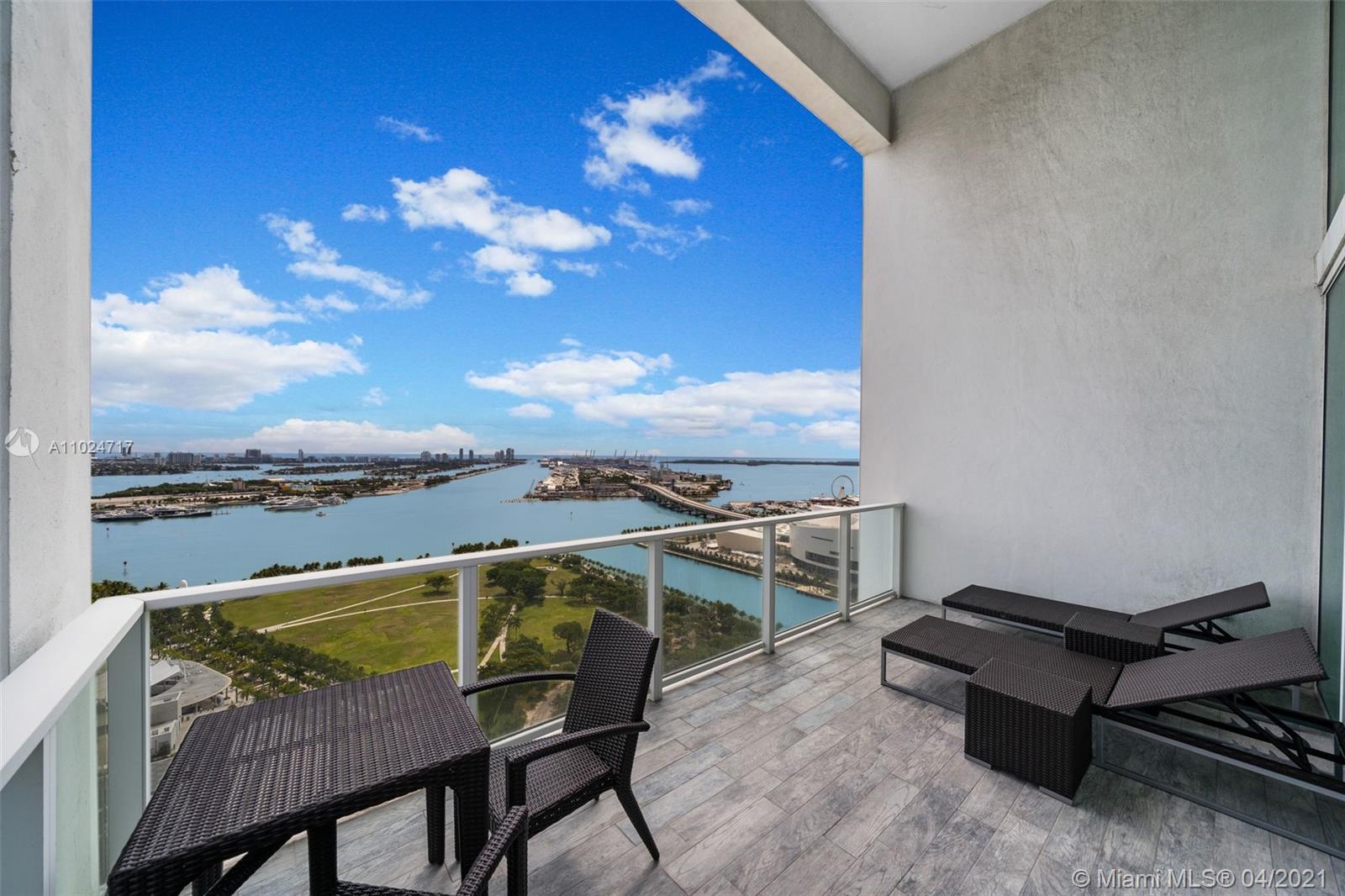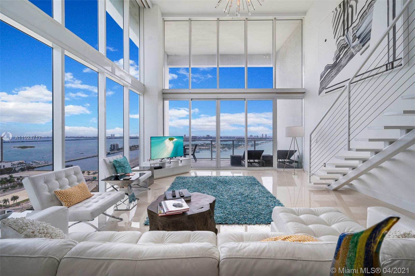 LOCATION, LOCATION, LOCATION & A MILLION DOLLAR VIEW. THIS BREATH TAKING 2 STORY LOFT HAS 1 BEDROOM W/ FULL BATH & A HALF BATH DOWN STAIRS & A MASTER BEDROOM & BATH UP STAIRS WITH THE GLASS ENCLOSED SHOWER OVER LOOKING THE BAY & SOBE . THIS CORNER UN IT BOASTS A TRUE 2ND BEDROOM W/ EXTRA LARGE CLOSETS W 2 STORY STONE COLUMN FACADE IN THE MAIN ROOM. THE UNIT ALSO HAS LARGE GLASS TILE FLOORS,ELECTRIC SHADES BOTH SILHOUETTE & BLACK OUTS & A VERY LARGE BALCONY OVER LOOKING THE BAY, PARK ,MUSEUMS, & SOBE