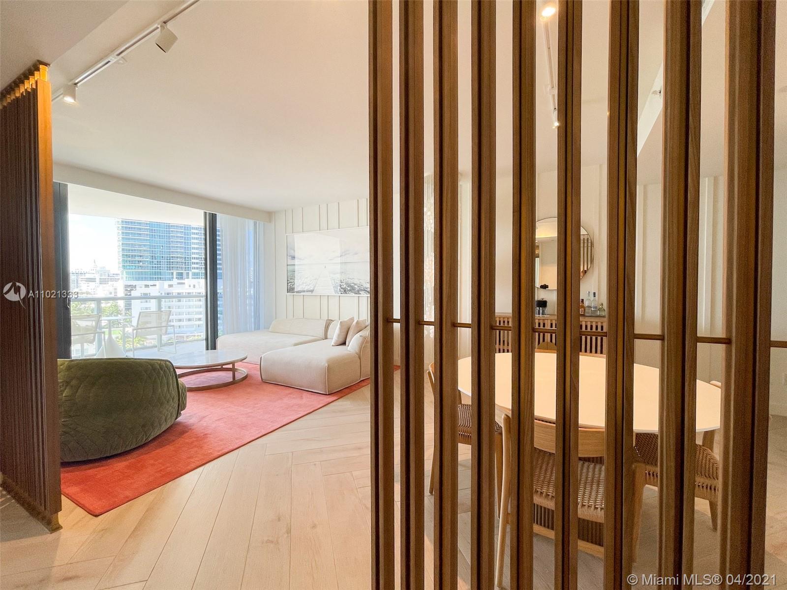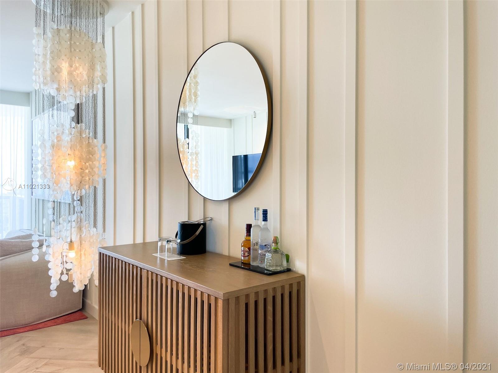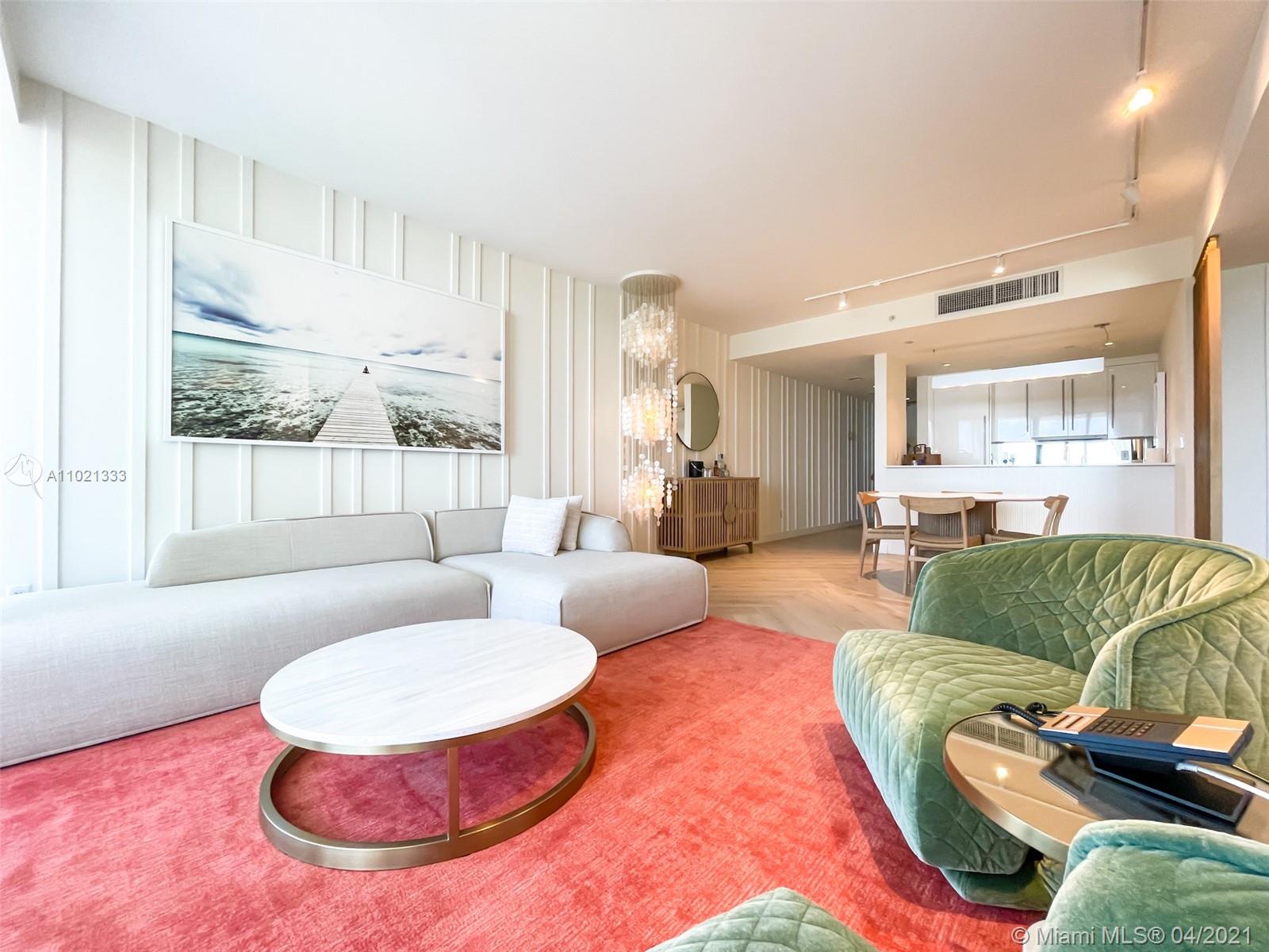 Find tranquility at The W Oasis model oceanfront residence. Exquisite fully furnished 1bd/1.5ba+den, featuring 1,026 SF of living area, open kitchen, top of the line appliances, washer/dryer, floor to ceiling impact windows and 2 distinct balconies off living & bedroom. Designer residence offers breathtaking ocean & city 180 degree views, marble bath w/ separate tub & shower + powder room for guests. Experience the finest 5star amenities, dining & concierge Miami Beach has to offer! Private full service beach, 2 picturesque pools w/ cabanas, fitness center, newly renovated 9,540 SF AWAY spa, tennis, basketball, Mr. Chow Beijing cuisine, several chic indoor and outdoor bars. May be placed in hotel program for additional income. W Residents also enjoy travel discounts at W Hotels worldwide!