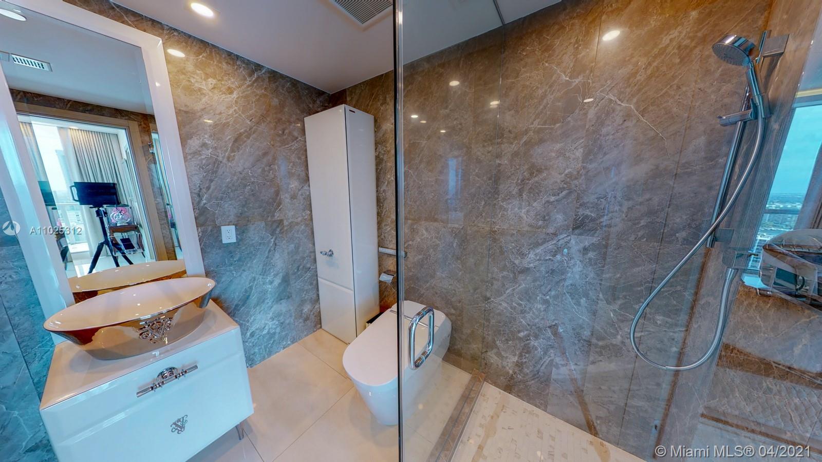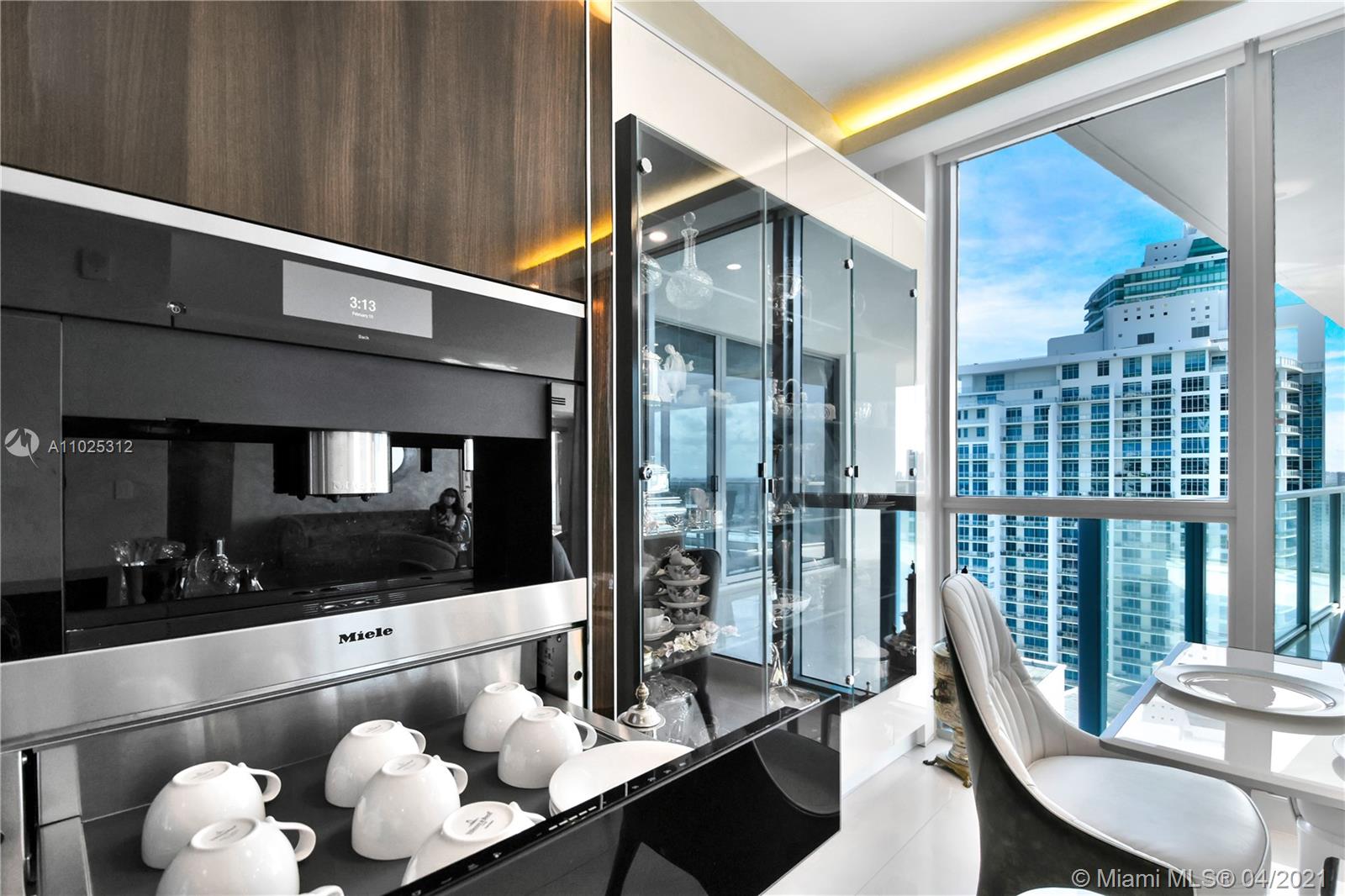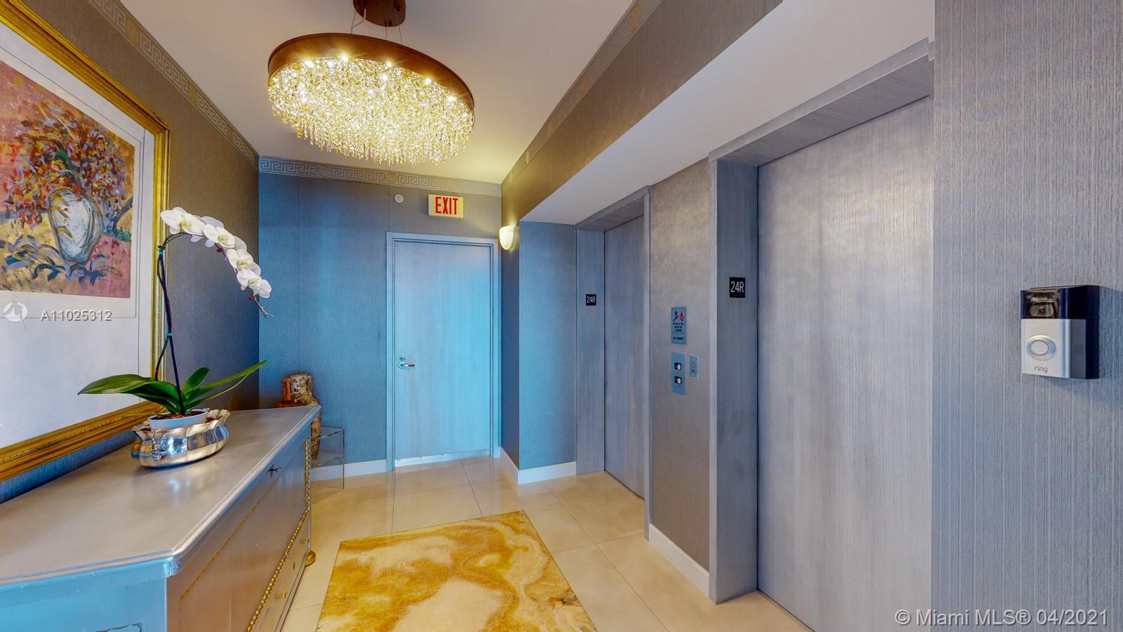 Luxuriously renovated apartment with no expense spared offering nearly 2,308 +-SF of interiors and +/-750-SF of wrap-around terraces. Wake up to panoramic views and sunrises and enjoy five-star amenities offered right here that will make every day feel like a vacation. This residence features a private foyer, floor-to-ceiling high impact windows, Italian “Versace” tiles on floors and walls, Versace wallpaper, new doors from Italdoors, Mirror TV in the master bedroom, LED/Lutron lighting, new A/C, Smart Home System, Soffits lighting, European style kitchen, upgraded European style luxurious baths with spa shower, and sumptuous master suite with hers/his Velart closets. Electric shades, Sound system, Italian Deco Painting on walls.Onyx Slab on the flooring at the foyer. New washer/dryer.