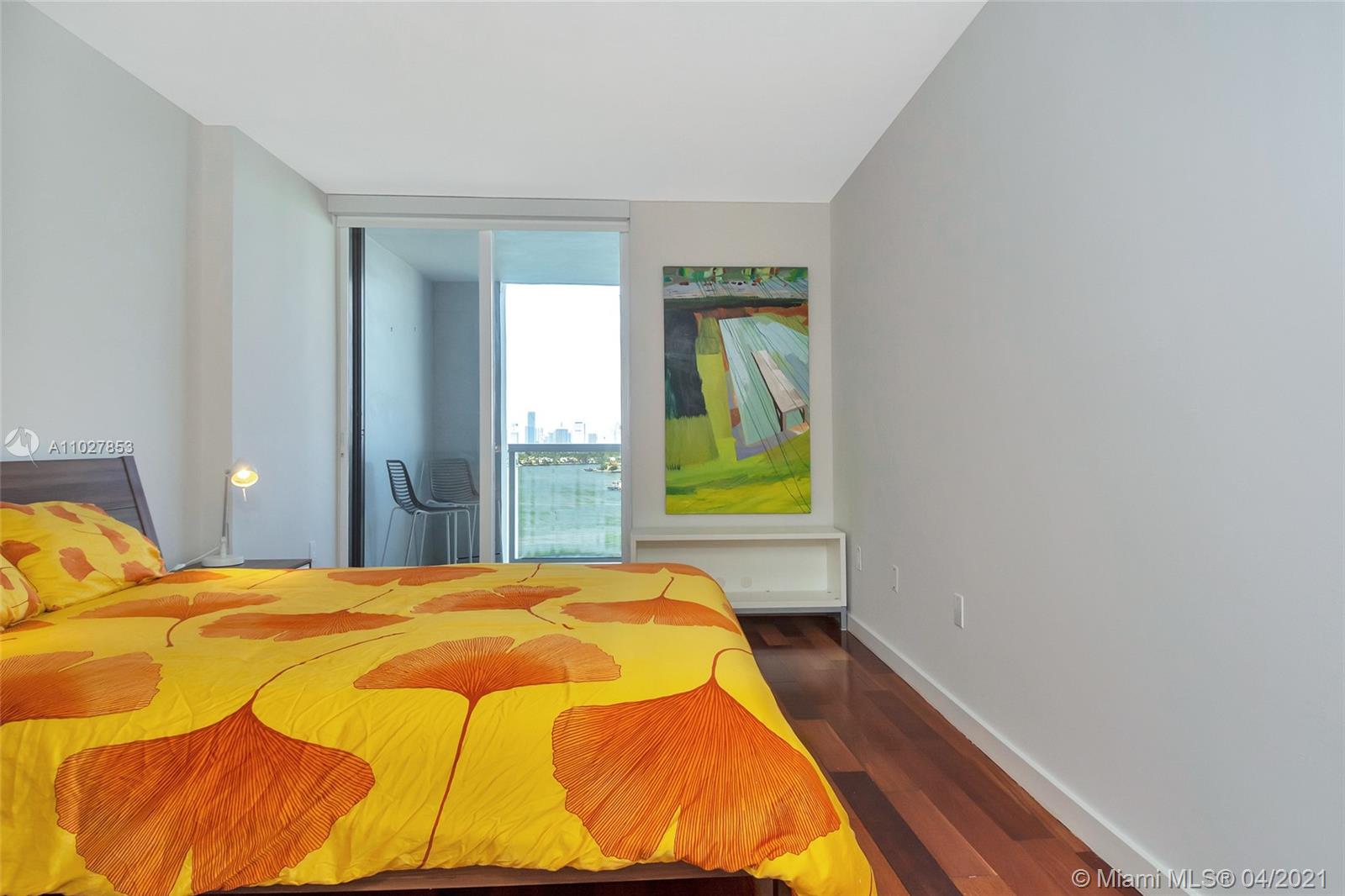 This view is absolute perfection! Finally, a fully furnished, move-in ready 2 bedroom at 9 Island, available immediately with stunning direct bay views from every window! This 2 bed / 2 bath 1,440 SF split bedroom unit has many upgrades including updated kitchen with stainless appliances, full size washer/dryer, wood floors and hurricane shutters. Master bath has dual sinks, glass shower and gorgeous marble floors. Access the oversized balcony from the living room, kitchen and guest bedroom. Unit comes with one garage space and extra storage unit. All artwork excluded except bicycle photographs and Andy Warhol print of Jackie Kennedy.