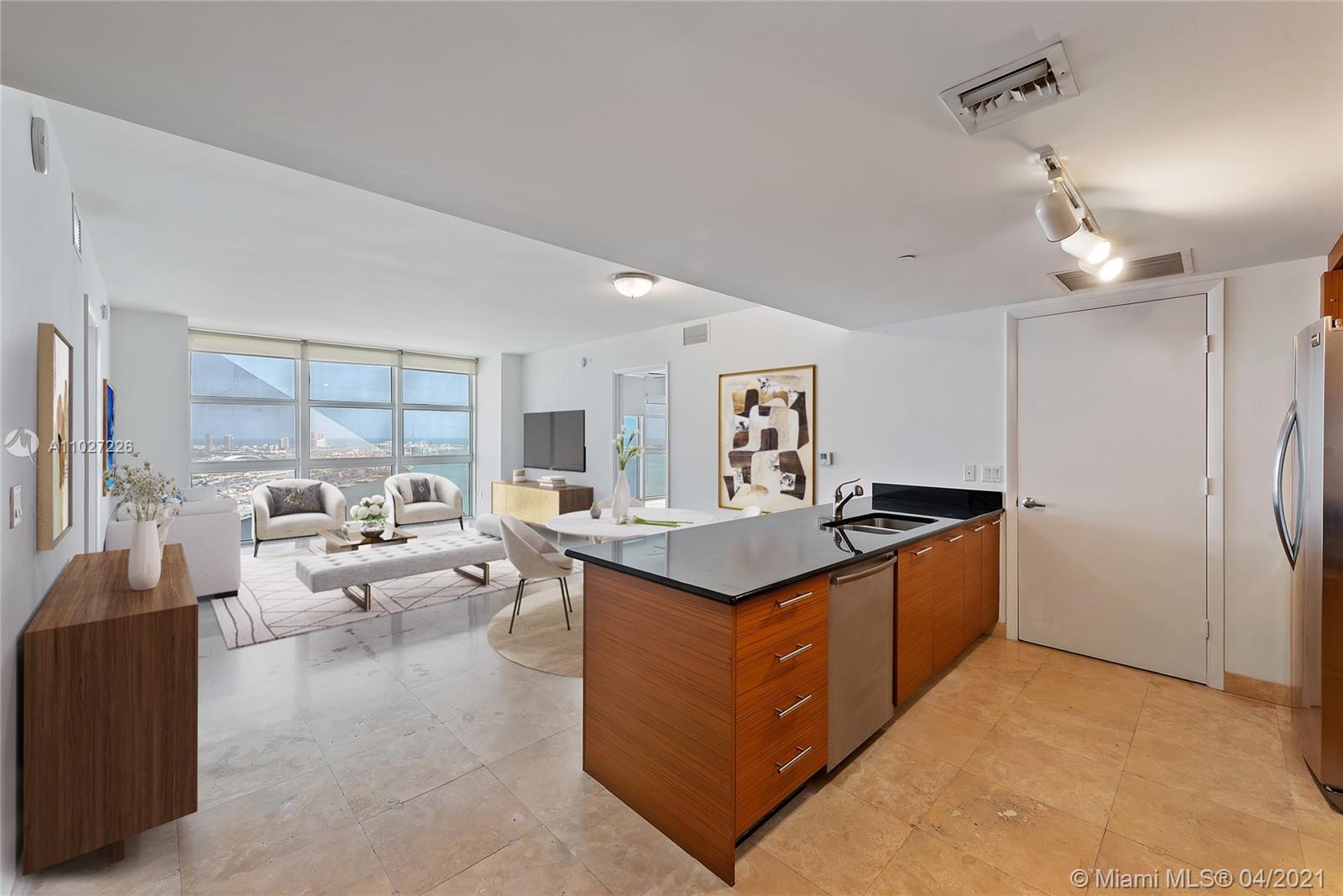 A metropolitan oasis at 50 Biscayne! East-facing residence 4106 features 3 bedrooms, 2 baths, travertine floors throughout, and a kitchen with all Teak cabinetry. The living room and bedrooms provide unobstructed, magical views of Biscayne Bay and Bayfront Park. In lieu of a balcony, exterior window art inspired by Roberto Burle Marx lets residents see the bay through the lens of his work. Bedroom windows open to allow the ocean breeze into the home. 50 Biscayne residents enjoy a 2-story clubroom, infinity-edge pool deck w/ cabanas and lush landscaping, and a 2-story health + fitness center containing a spa & meditation rooms. Located in Miami's lifestyle epicenter, walking to the arts + culture nearby such as Bayside Marketplace, Perez Art Museum, and AAA has never been easier.