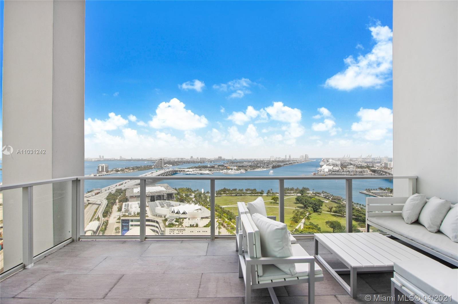 Two-story, east-facing corner two-bedroom at the architecturally significant Ten Museum Park condo. This upgraded unit sparkles! The best of downtown Miami is just outside your door and the dramatic views of cruise ships, Miami Beach and the bay and ocean are unparalleled. White porcelain floors, generous closet space, huge terrace. And 2 parking spaces. Membership to La Prairie Spa included.