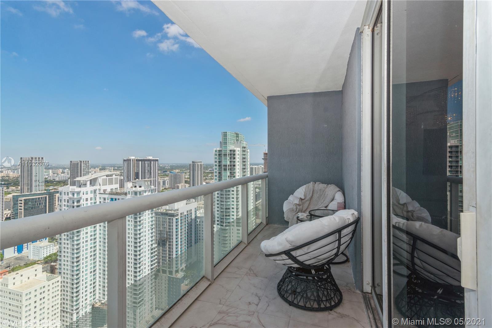 Stunning studio on the 49th floor featuring incredible skyline and sunset views. Recently installed floors throughout the unit and balcony. Full service condominium with 24 hours security, fitness center, spa, pool and clubhouse. Central location in the heart of Downtown Miami across the famous Bayside Miami, Brickell, and the beach. Walk to shops, restaurants and the Metro Mover.