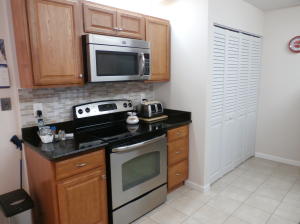 Move right in! Lovely Corner unit 2 bedroom 2 bath with upgraded kitchen, flooring and more. Beautifully remodeled kitchen with stainless appliances, glass tile backsplash, new cabinets with drawers and tile floor. Granite counter vanities in bathrooms, Wood laminate floor in living areas. Shutters on windows, ceiling fans, new water heater and enclosed patio. Furniture negotiable. Active HOPA Community has manned security gate, clubhouse, free golf for owners,tennis, putting green, fitness and more.