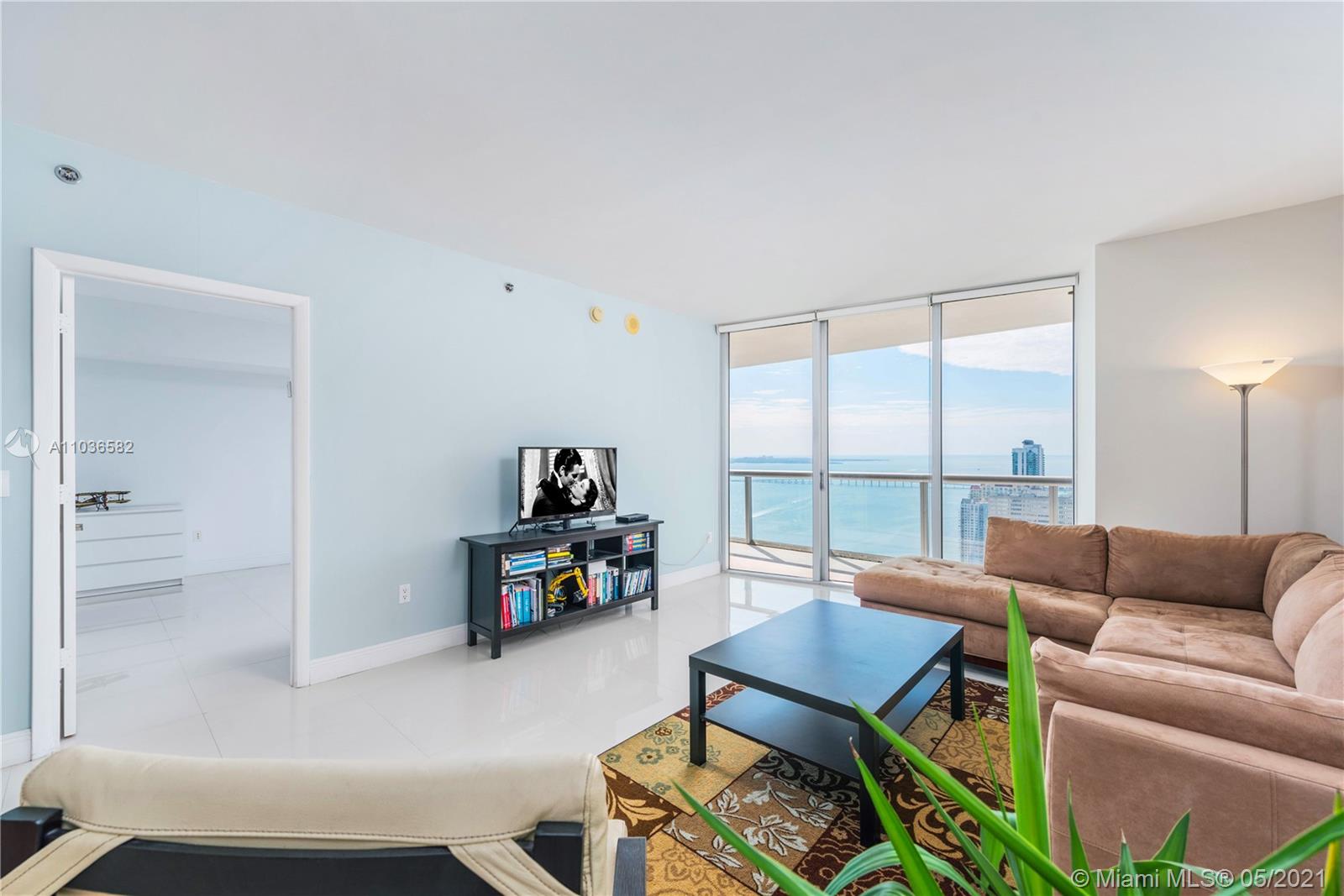 A spacious & bright 1 Bed, 1 Bath condo w/ over 1,000 interior square feet; white porcelain tiled floors in living areas; marble floors in the bathroom; a large, walk-in closet; kitchen appliances by Sub-Zero & Wolf; 10-foot-high ceilings w/ floor-to-ceiling glass windows, and breathtaking views of Biscayne Bay & city skyline from the 47th floor. The largest 1 bedroom floor plan at Icon Brickell. Includes 1 assigned parking space. Monthly condo dues cover basic cable TV, high-speed internet, and water. Building amenities include a 300-foot-long swimming pool, 50-person hot tub, poolside food & beverage service, movie theater, a 28,000-square-foot spa & fitness center, full-service concierge, on-site restaurants, and more. Within blocks of the shops & restaurants at Brickell City Centre.