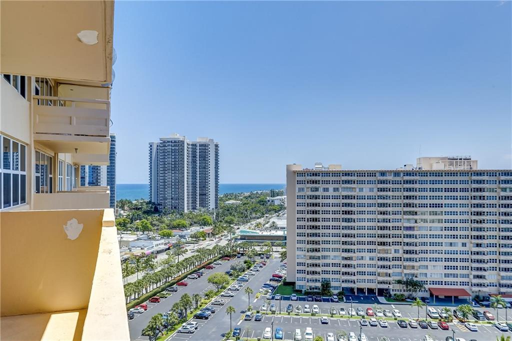 16th Floor Lower Penthouse Large 1 bed 1 bath. Handyman unit. SWEEPING VIEWS from the Ocean to the Intracoastal, overlooking pool & bocce ball court. Building being upgraded with new glass balconies & exterior paint: seller to pay assessment. Great opportunity to own a fabulous view in a high end area with a low cost entry point. Amenities include clubhouse directly on Intracoastal, huge swimming pool, gym, 24 hour guarded security, on-site management, community room, extra storage, activities, bicycle storage... $495 monthly maintenance includes fiber optic cable, internet, water, sewer and trash. Cash only building. One buyer must be age 55 or over Min 700 credit score. $47,520 annual income required. No Renting. Surrounded by restaurants, shopping, golf, grocery stores & entertainment.