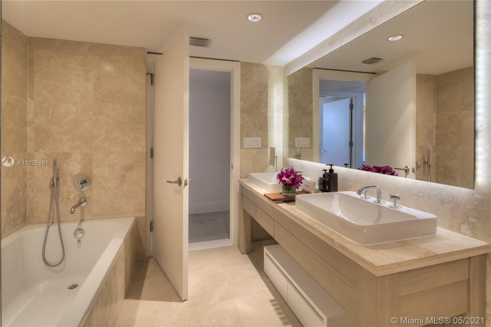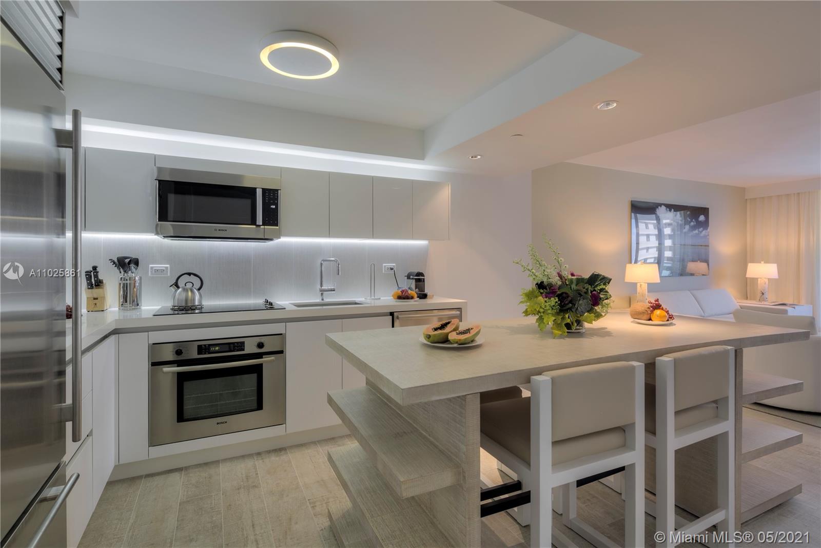 This gorgeous 985 Sq. Ft. 1 bedroom, 1 bathroom is the perfect combination of all things natural and organic in a luxurious setting. Enjoy the private fully furnished balcony complete with a custom double chaise lounge and a table set for two overlooking the Atlantic Ocean and Intracoastal. The living room has a plush white organic sofa that converts into a bed, and a gorgeous maple dining table. ItalKraft gourmet kitchen, sensual limestone bathrooms with luxurious Dornbracht fixtures. Enjoy a variety of services including a private fully-staffed residence lobby, valet attendants, personal concierge, and chauffeured Tesla SUV's. Eco-conscious amenities to include 4 pools, 4 restaurants, 3 bars, 14,000 sq. ft. gym, Bamford spa, hair salon, Soul Cycle, and mjuch more.