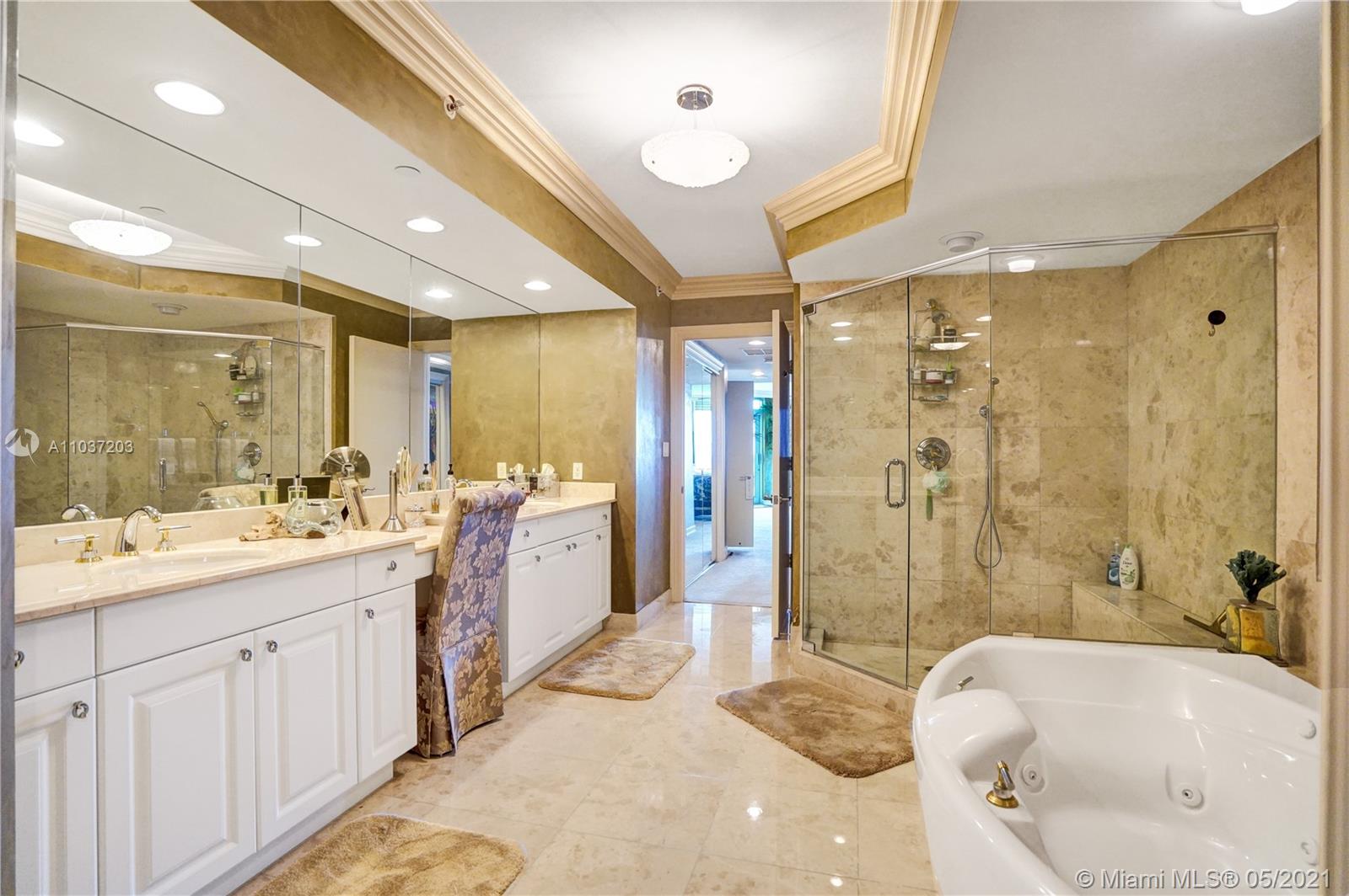 Luxury living, totally unobstructed views! Hamptons South has the best views and is located in the heart of Aventura The views of this unit are spectacular. Ocean and intracoastal in the front golf course lake and city in the back. Imagine waking up to a beautiful sunrise. This 2 bedroom + den/TV room, 3.5 bathrooms is light filled and in pristine condition, Marble and wood floors and a huge laundry room. Private elevator. Infinity pool, movie theater with 100 seats, BBQ area, tennis courts, internet café, kids room. On site exclusive restaurant. Only 5 minutes to the beach. 3.5 mile bike and walking path across from the property. Easy to show. Call or text listing agent.