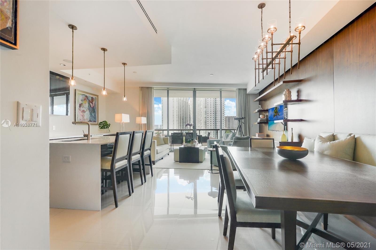 Beautiful fully furnished & professionally decorated 3 bed/4,5 bathrooms + maids quarters residence in one of the most prestigious buildings in South Florida**ECHO AVENTURA**designed by world renowned Carlos Ott w/interiors by Yabu Pushelburg. 2,360sf interior + 370sf & 180sf balcnies. Private elevator into your residence w/breathtaking views of the Bay & city. Wolf-Subzero Appls, high ceilings, oversized terraces with Summer Kitchen. Echo's 5 star Amenities are a step above the rest w/its 4000 sqft state-of-the-art fitness center featuring an infinity pool w/unobstructed views of the Bay, a Yoga Room, Café, Concierge, Dog Walker & so much more