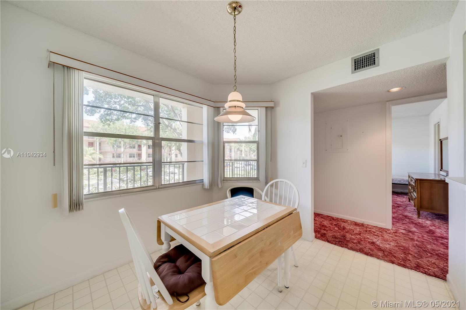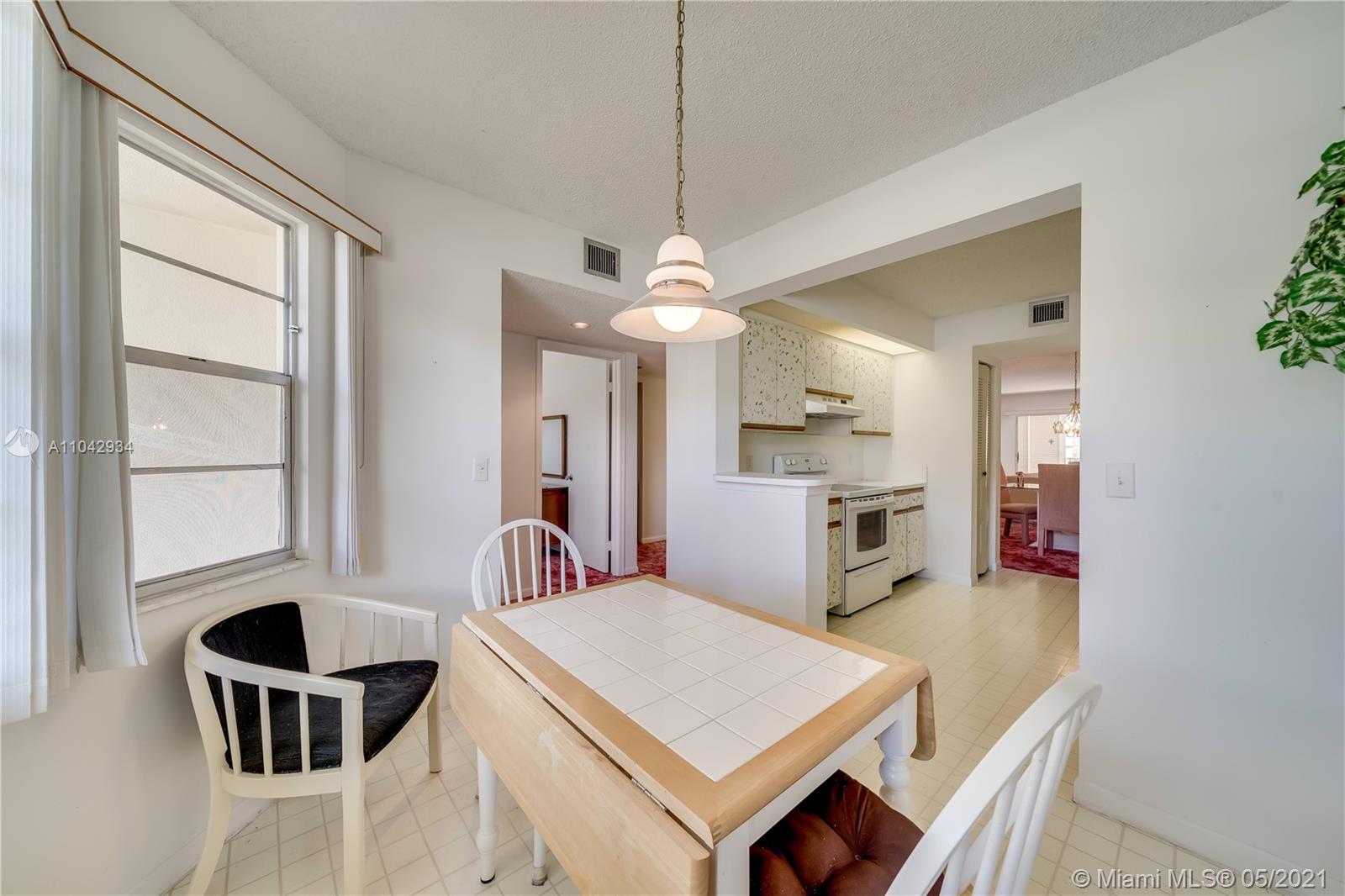 Well kept and maintained. 2 bedroom 2 bathroom split bedroom floor plan with walk in closets in each bedroom. With a breakfast nook. Step in shower in the master bedroom. This condo is in the most exclusive 55 plus community in Pembroke Pines. Resort style living with a million dollar clubhouse, movies, fitness center, transportation, free golf,pharmacy,cafe,24 hour security