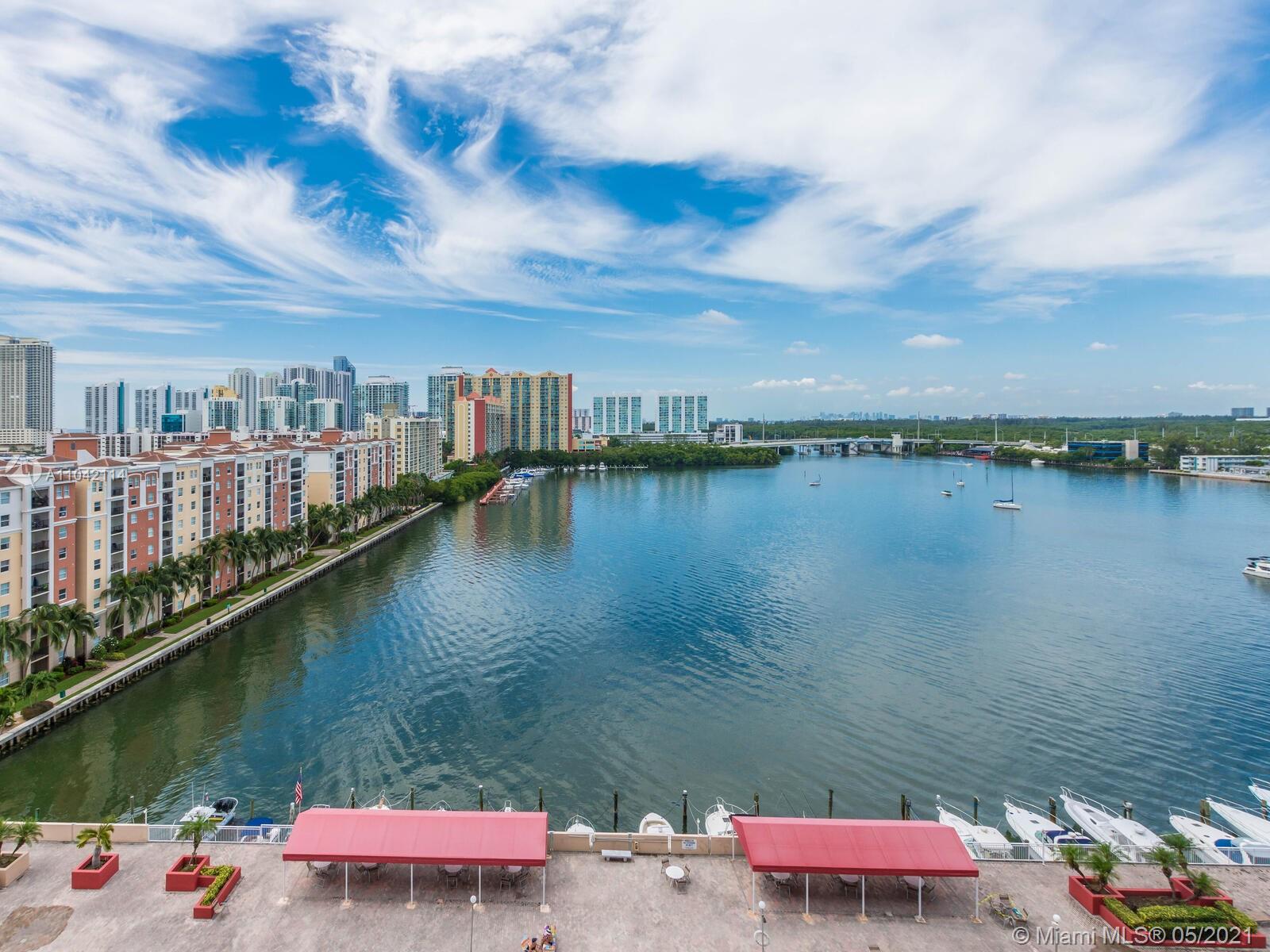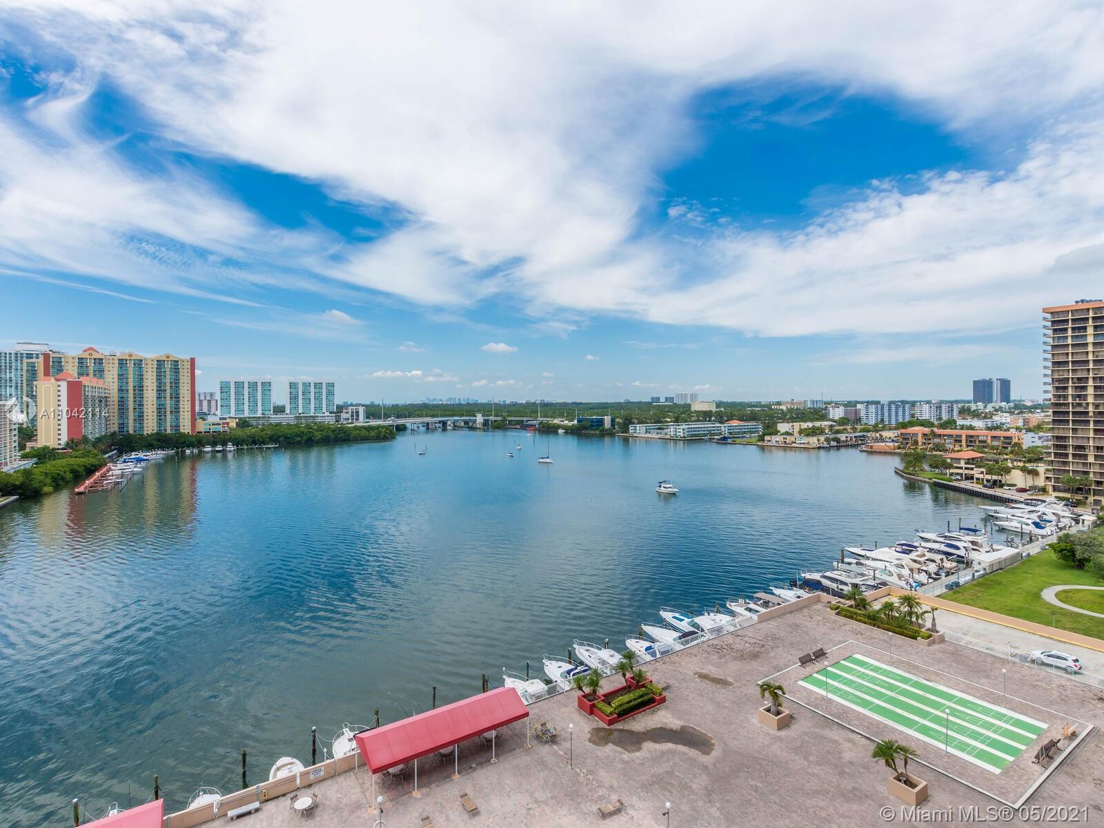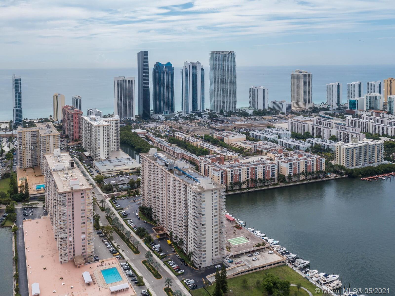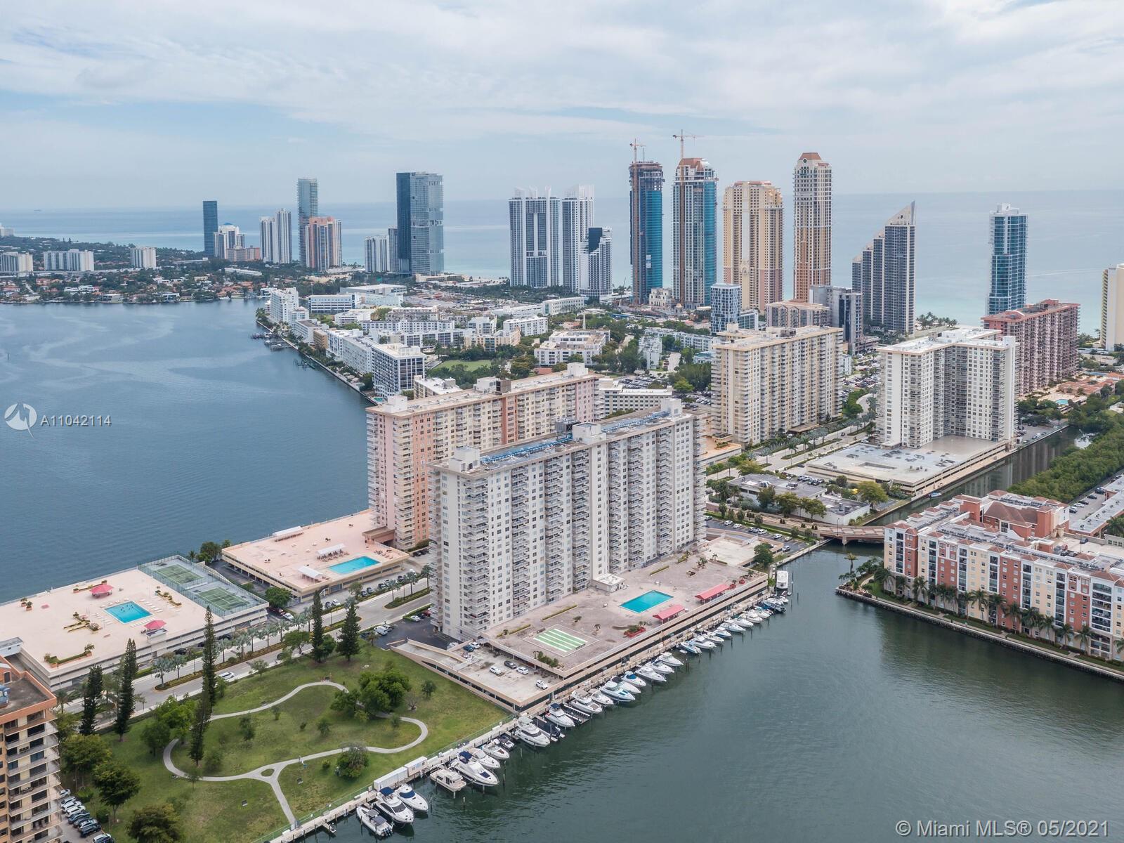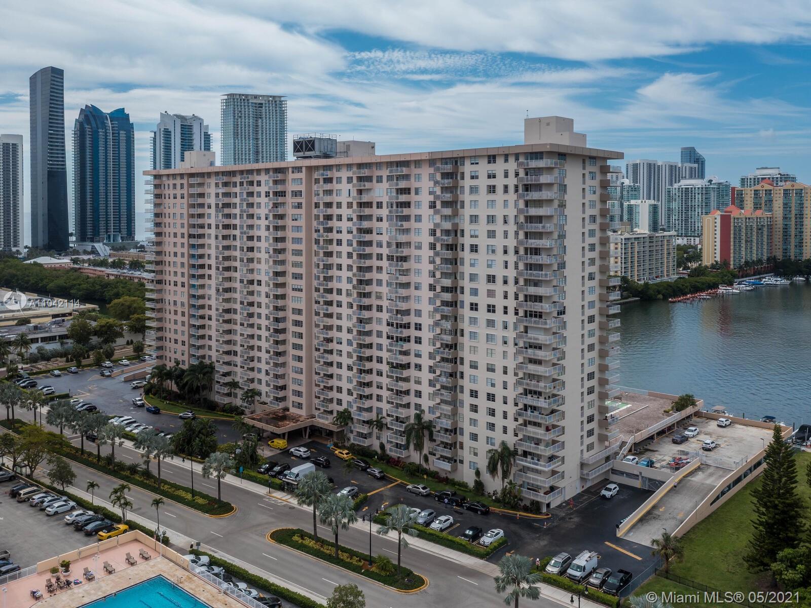 Rarely available 1 bedroom unit on the "01" line of Winston Towers 100. This one bedroom unit features laminate floors throughout. The view of this unit is the best in the building, overlooking the pool area as well as Marina. With direct intracoastal views, you also have amazing views of the city and the ocean. Only steps to the shared laundry room and elevators. The building features a gym, card rooms, theater room, pool area and valet parking for guests. With a very short walk to famous Sunny Isles beach and restaurants this is a must see opportunity! This building has no deeded parking spaces, however up to two spaces can be rented from association for only $50 per month. Low Condo fees of only $366 per month with no special assessments here! Don't walk....run to see this place!