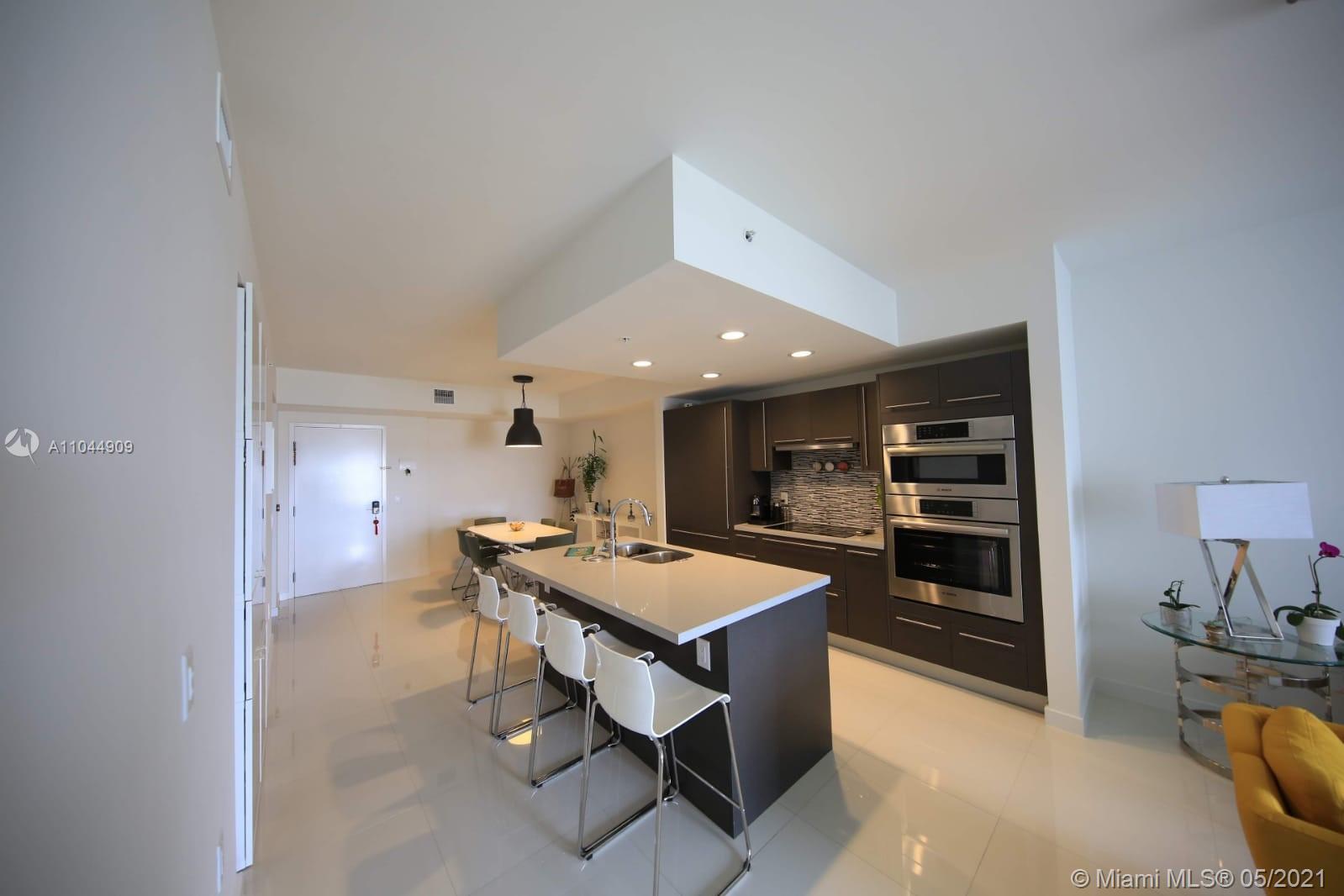 Beautiful apartment 1 bedroom and 2 bathrooms with a Den conveniently located in the best and modern area in Doral. Unit features porcelain floors, Amazing open kitchen with European cabinetry, premium self-closing, quartz counter tops, and Bosch stainless steel appliances. With large walk-in closets, floor to ceiling, impact windows, sliding glass doors, energy efficient central A/C. A few minutes front the airport, downtown Doral, International and Dolphin mall, conveniently located, great views, snow birds welcome!! Great for a first home or for investors. Don't miss out!! Bring all offers!