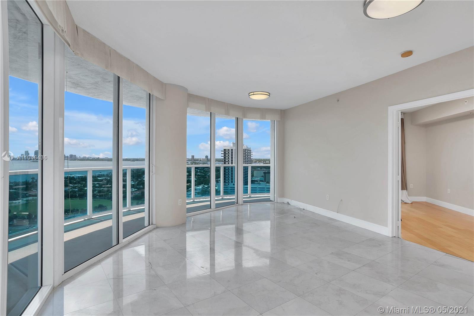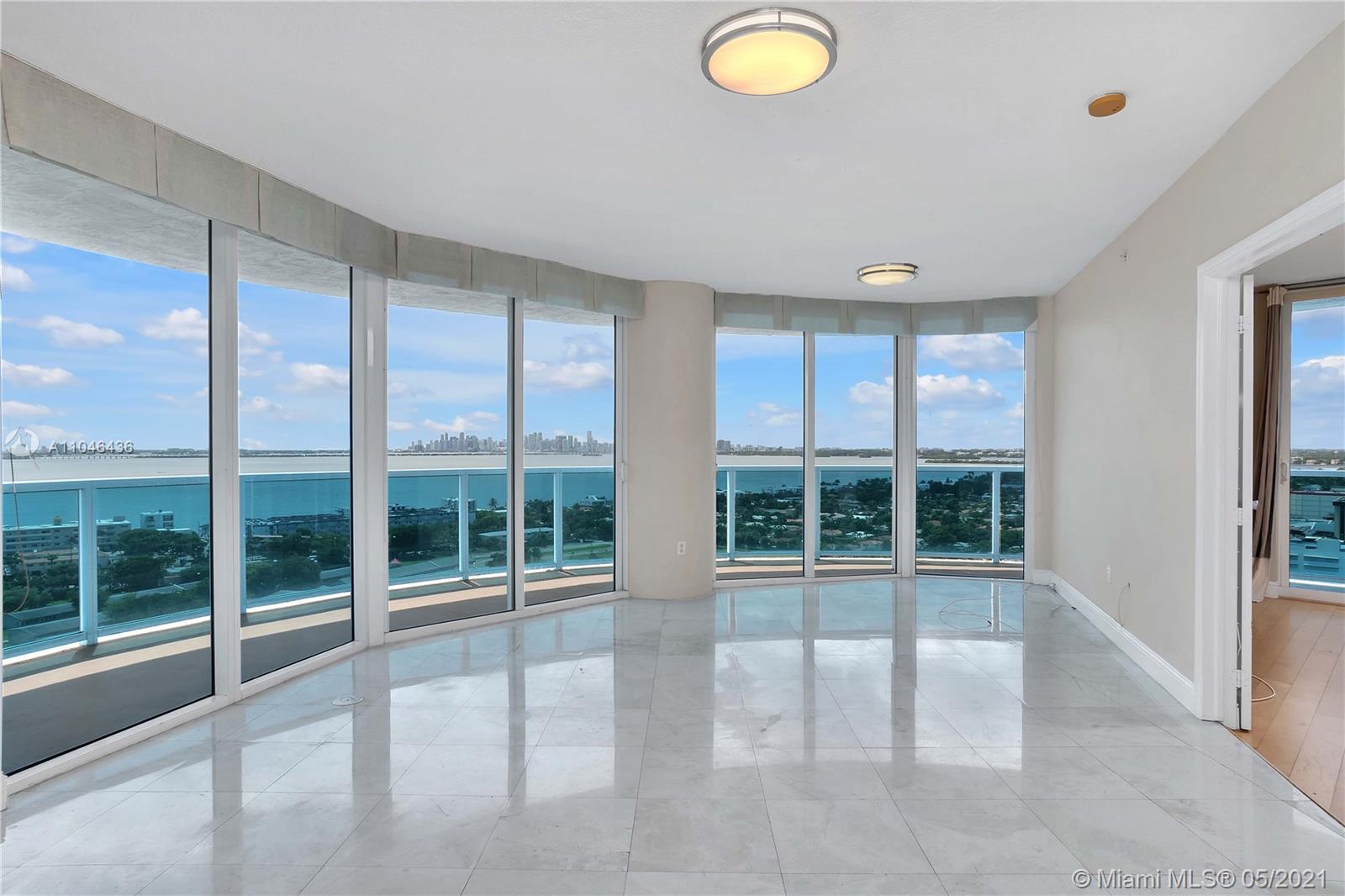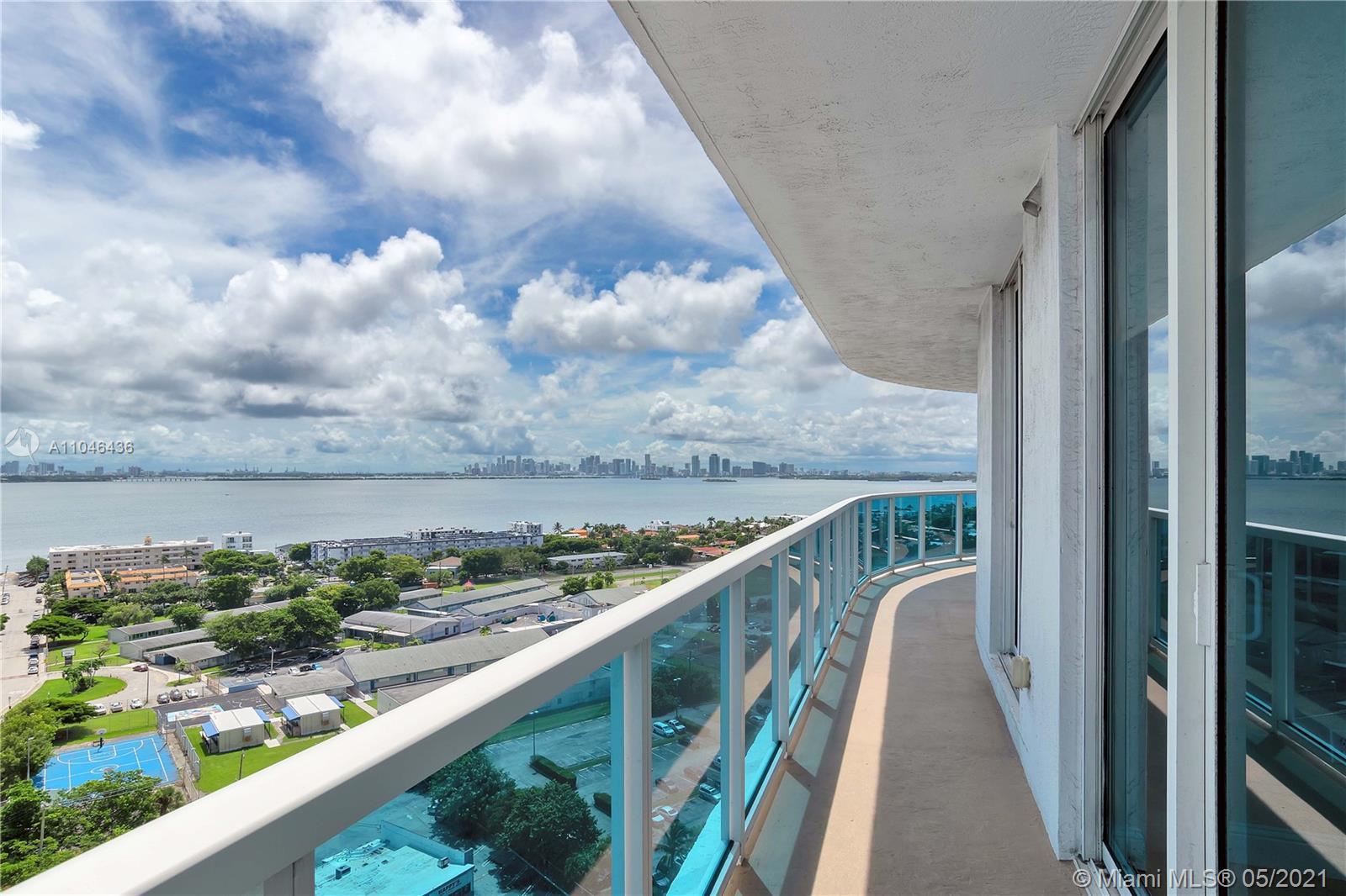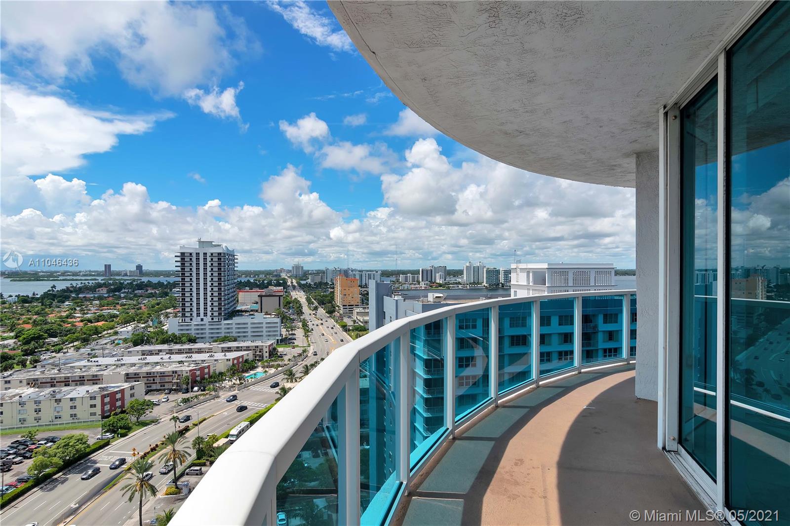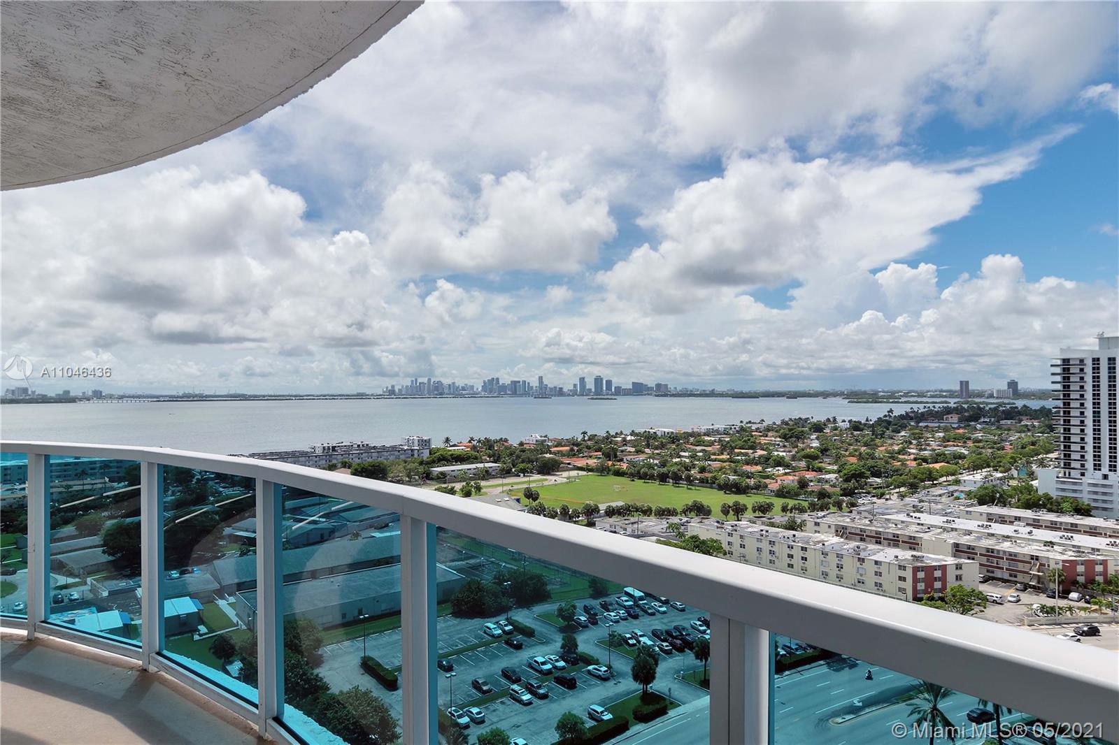 One of a kind waterfront corner unit with magnificent 180-degree panoramic views of downtown, bay and beaches. Biggest wraparound balcony in the building over 400 sqf. Ceiling to floor glass windows in all areas. Minutes away from beaches, airport and shopping. Newly decorated with modern up to date fixtures including California walk-in closets and drawers. Priced well below the average of comparable units located on lower floors with obstructed views . Cable TV and wifi included and TWO assigned parking spots 337&338 . Building amenities include, newly renovated pool, gym and lobby area, clubhouse and plenty of guest parking! Please note, $197.81 special assessment fee has been added to monthly maintenance until May 2024. Current lease ending 8/31/2021 Must see to truly appreciate.