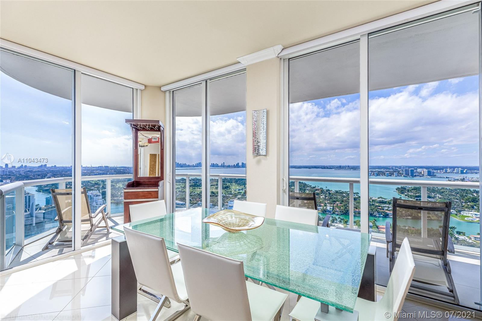 Breathtaking unobstructed views from the 42nd floor!!! Floor to ceiling sliding glass doors and windows in every room for easy access to the balcony and to enjoy views of the downtown skyline, Biscayne Bay, and the Atlantic ocean. Beachfront condo with direct access to the beach. Immaculate marble flooring all throughout. The kitchen is equipped with top-of-the-line stainless steel appliances and the master bath features a jacuzzi with separate shower and double vanity. Building amenities include a gym, sauna, steam room, heated pool, tennis court, beach service, attended lobby, 24-hour valet parking, and much more! A Must see!