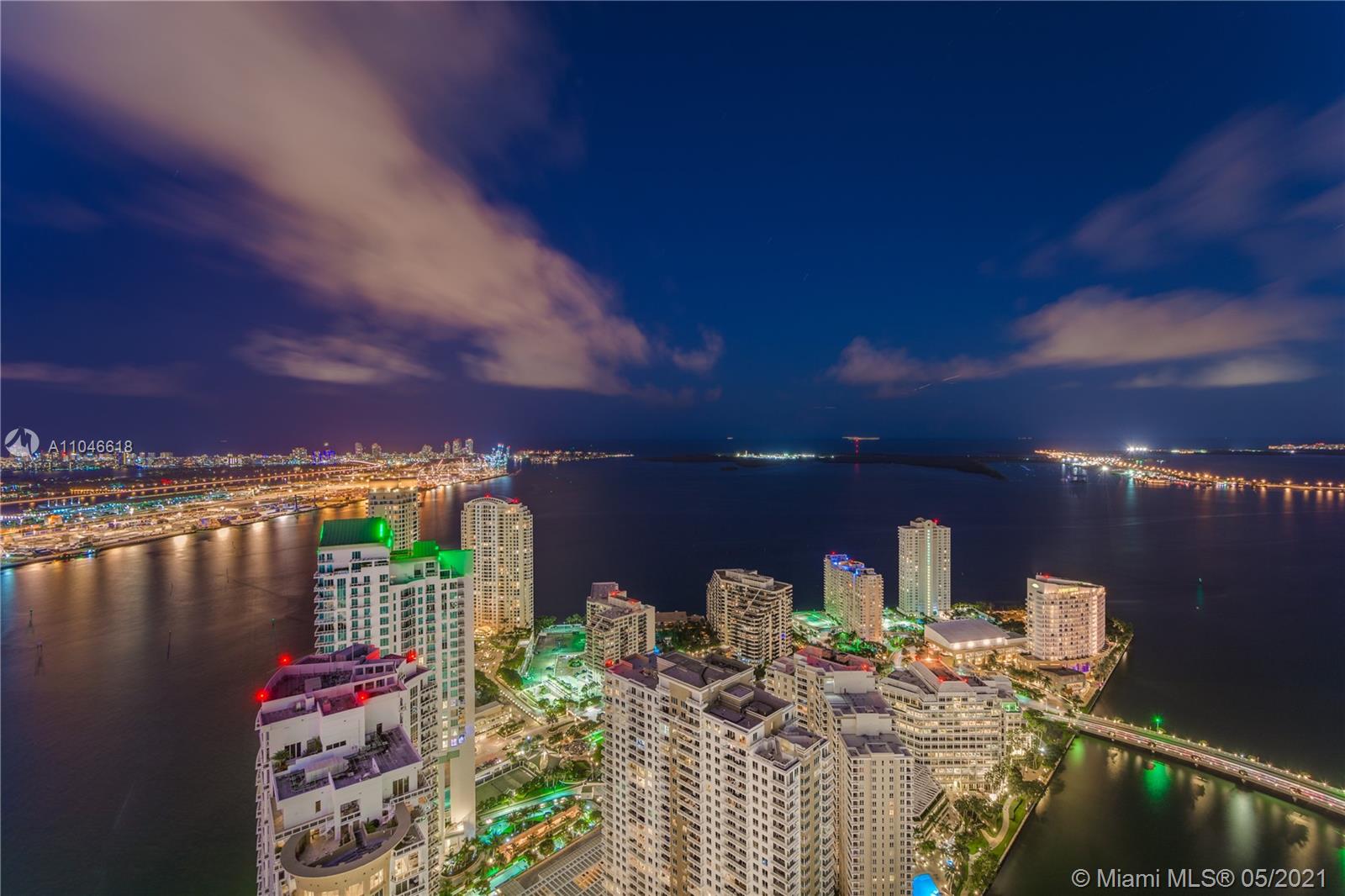 Castle in the Sky Condo w/ unobstructed views of Biscayne Bay, Ocean and Miami Skyline. Exclusive 2 Story PH residence with over 2k sqft. of living area + 1k sqft terrace garden to entertain family and friends. Custom and unique designed condo incl: 3 Beds 3 Baths glass tiled floors, Italian Kitchen cabinets, stainless steel appliances, granite countertops, upgraded modern bathrooms and SMART interior features, BBQ, Outdoor shower. The urban resort amenities incl: 300 ft pool, 50 person hot tub, 28k sqft, spa and fitness ctr., movie theatre, game room, poolside cafe, 24 hrs security, valet, and concierge and retail restaurants. Located in the heart of Brickell walking distance to City Centre, Arena, minutes to Beach and Airport. Seller is accepting Bitcoin payment.