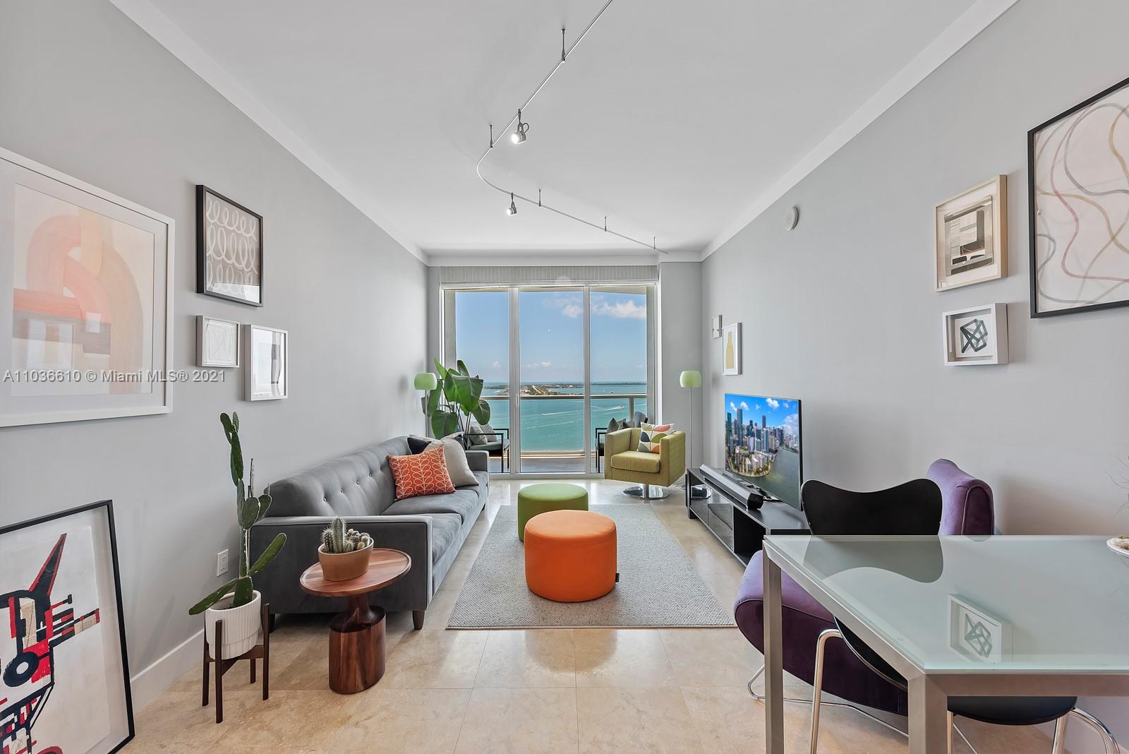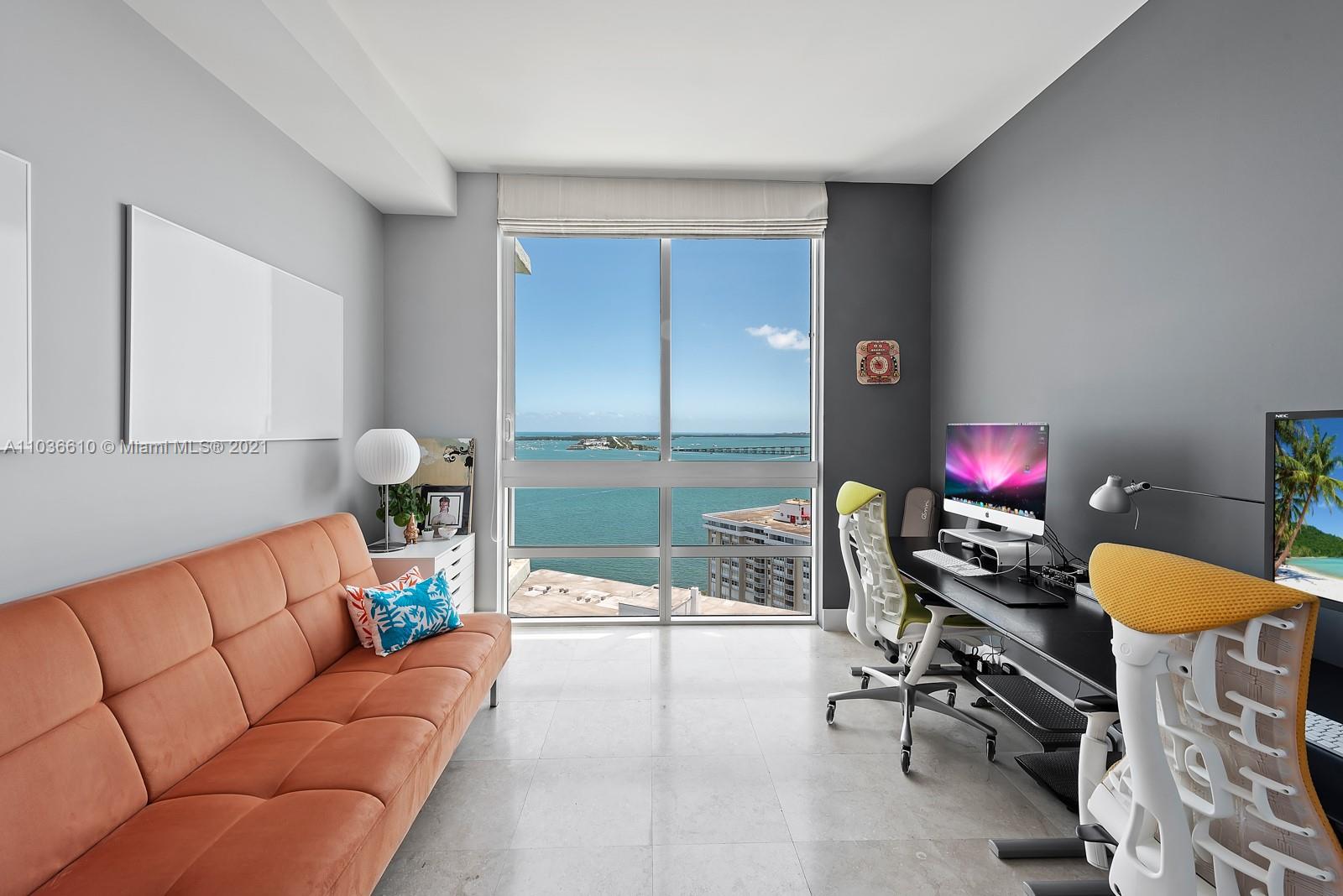 A tropical modern tower suite atop Emerald at Brickell! Located directly below the PH level, TS103 offers postcard views from South Beach to Key Biscayne from every angle, 10 ft ceilings, Scavolini cabinets with Subzero & Kitchen Aid appliances, Dorn Bracht, Duravit and Kohler fixtures. Every inch of this 2 bed, 2.5 bath has been meticulously kept in mint condition. Large master suite with large walk in closet and en-suite bathroom and guest suite doubling as the perfect office with Herman Miller furniture complete this offering. You will love the rooftop Sky Club with infinity edge pool & spa. Emerald's location in the center of the financial district provides quick and easy access to local business, arts, and culture steps to Brickell Avenue and Brickell City Centre.