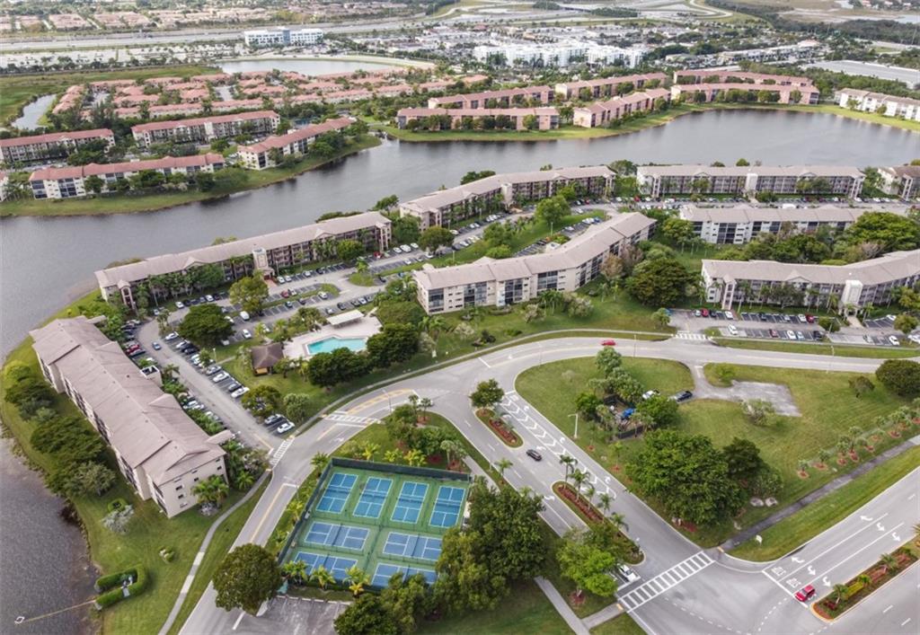 Perfectly placed corner unit in the coveted Century Village! Offering gorgeous lake views, easy access to community amenities, and no upstairs neighbors this is everything you have been searching for and so much more. Get to know the neighborhood with the community pool, clubhouse, fitness center, sports courts, and more providing plenty of ways to stay entertained. The updated A/C and roof (2020), upgraded windows, and hurricane doors provide peace of mind so you can stress less.