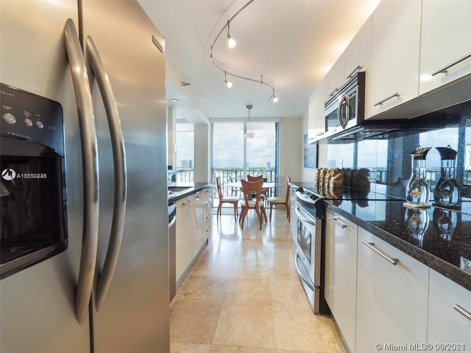 Million Dollar View! Beautiful 2 Bedroom 2 Bath Corner Remodeled Apartment move-in ready. Most Desirable Line in the Building. Unobstructed views. Great Location Safe and Secure in the Heart of Sunny Isles Beach. Storm shutters, Motorized shades, Alexa Home automation. A/C and Water Heater are 6 years old. Italian kitchen cabinets, granite countertops, stainless steel appliances, Travertine floors in all the common areas, and Berber carpet in the bedrooms. Washer/Dryer inside the unit and 2 garage parking spaces. This building has been remodeled and has great amenities. You can rent the unit the next day, Perfect for Families, Snowbirds, or Investors. Great Schools and Parks for Children. Block away from the Beach. A special place to live! Make an Offer Today!
