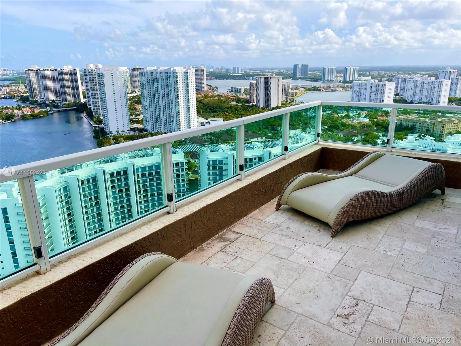 JUST FULLY REMODELED DESIGN TURNKEY UPPER PENTHOUSE LOCATED IN THE HEART OF AVENTURA! THIS LARGE 3 BED/3.5 BATH UNIT WITH MORE THAN 3,000 + 800 SF (MEZZANINE) FEATURES STATE-OF-THE ART KITCHEN WITH HIGH END APPLIANCES, MODERN LIGHTING, WOOD DOORS, FULL RENEW LIVING & BATHROOMS, PORCELAIN FLOORS, STILE FURNITURE. EXPERIENCE OUTDOOR ENTERTAINING FROM 3 BALCONIES WITH OVER 300 SF WHILE ENJOYING THE STRIKING 270 DEGREE PANORAMIC VIEWS OF SUNRISE & SUNSET TO OCEAN, INTRACOASTAL, GOLF COURSE & BIKING/WALKING PATH, PARK & GARDEN. AMAZING NIGHT VIEW! THE BUILDING OFFERS 5 STAR 2-STORY SPA W/TREATMENT ROOM & HEALTH CLUB, CLASSES, GYM, 4 TENNIS COURTS, 2 POOLS, & PRIVATE MARINA. 24 HR GUARD GATE, WALKING DISTANCE TO SCHOOL, AVENTURA MALL. DOCK AVAILABLE. LOW MAINTENANCE AND TAXES!