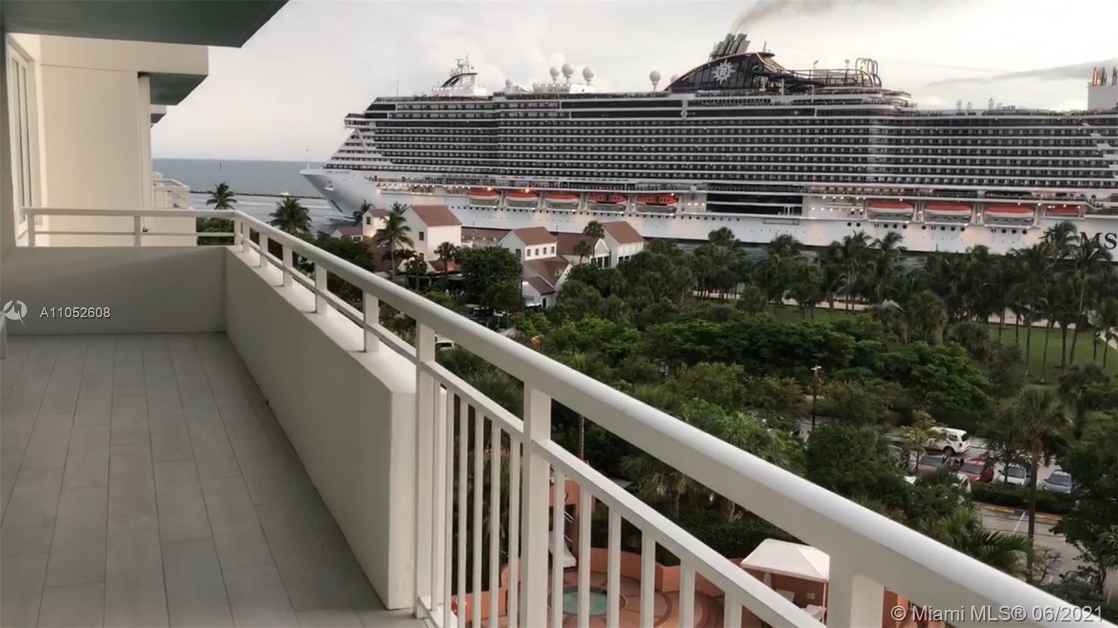 Rarely available SW exposure corner residence with 314 sq ft wrapped around terrace. Absolutely turn key, entirely renovated with flawless finishes, from Italian porcelain floors to new appliances. This magnificent apartment bears impact windows and sliding doors throughout. The opened kitchen is an invitation to entertain guests around the quartz countertop, completed with quartz backsplash and custom Italian cabinetry. Remodeled bathrooms with Carrera marble and DXV Fixtures, and walk in closet in master bedroom. One of the best line at South Pointe Tower, enjoy watching cruise ships sailing out from Port of Miami, thanks to unobstructed and breathtaking views of Govt Cut as well as South Pointe Park, Fisher Island and Miami skyline views