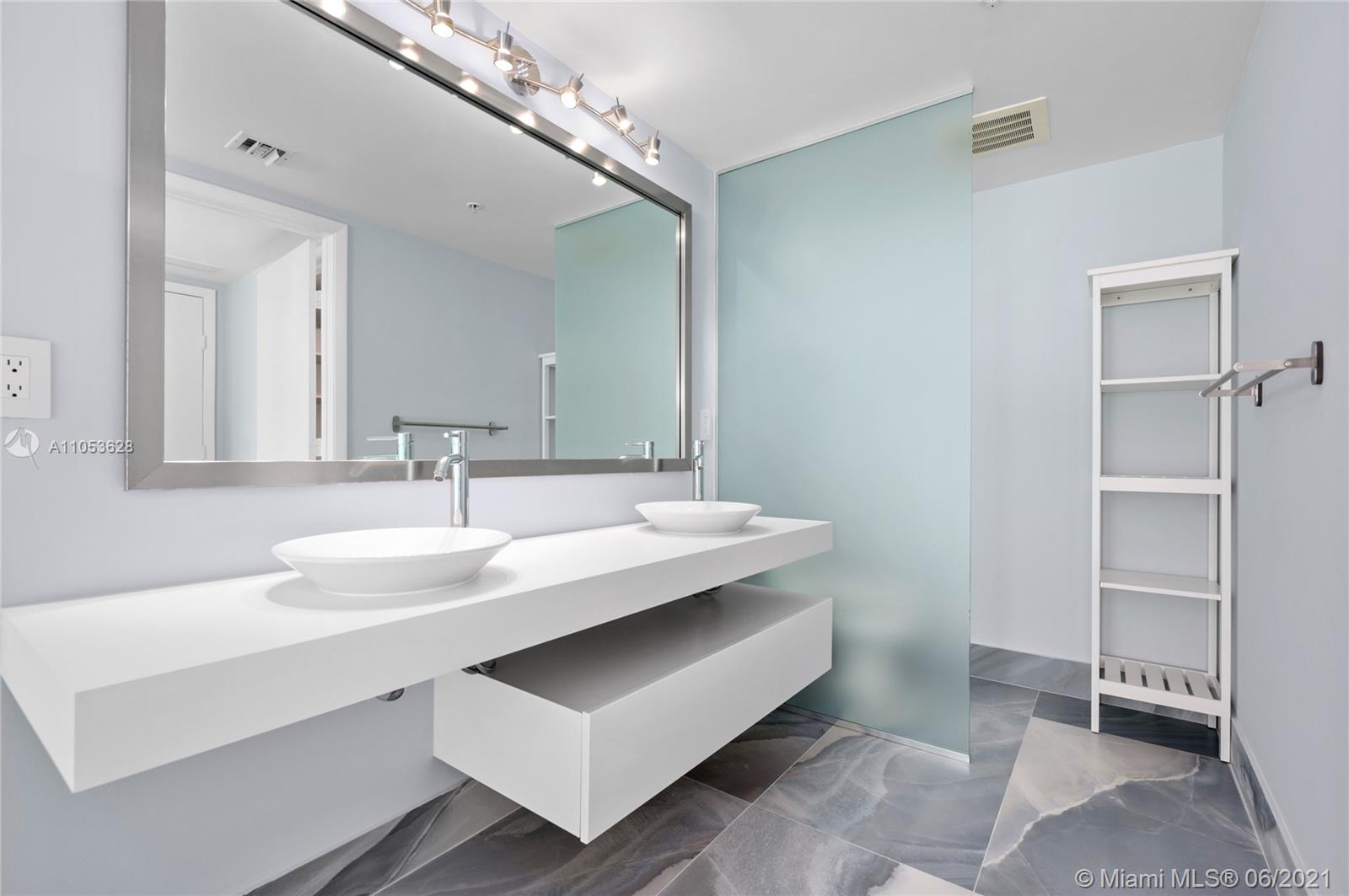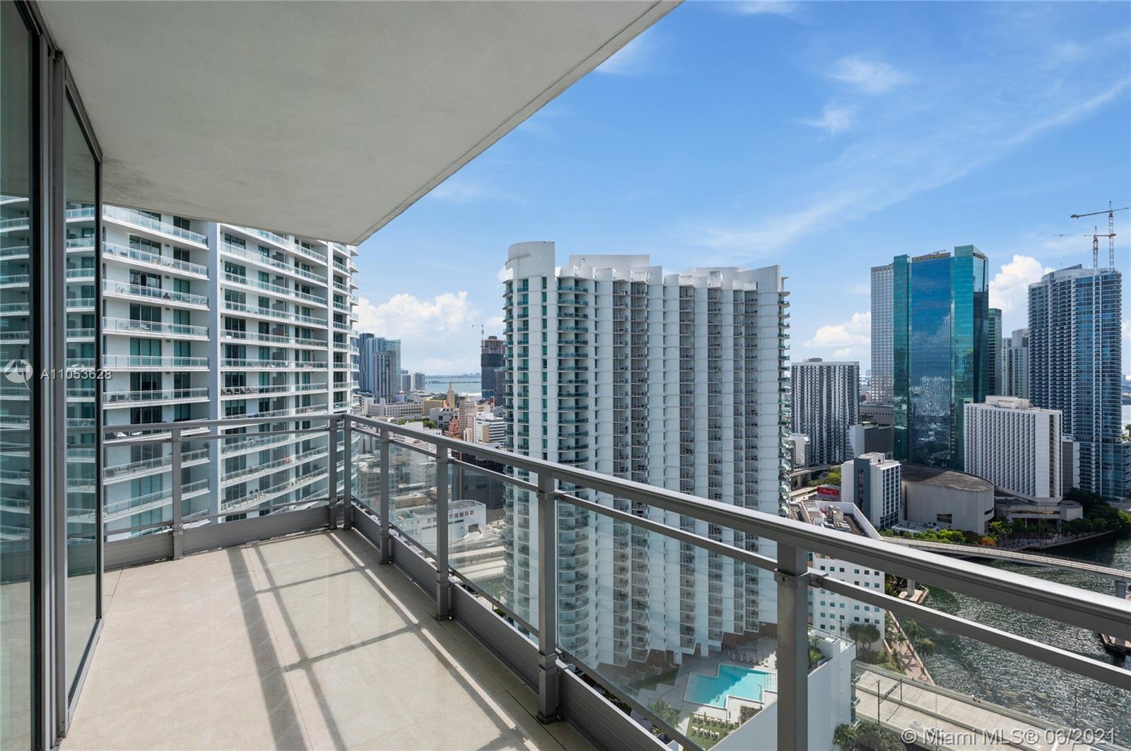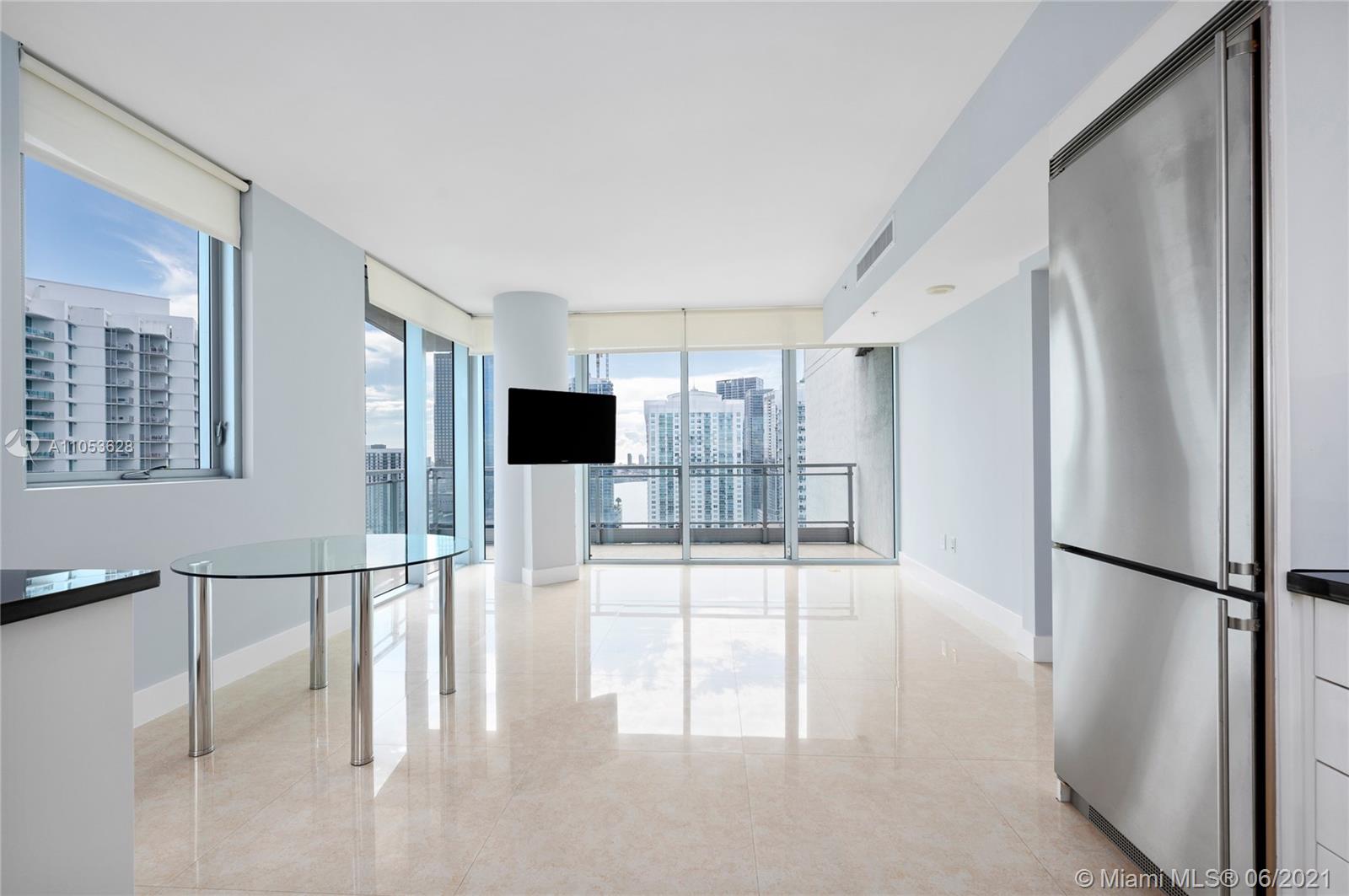 Completely updated luxury condo on desirable 10 line of the MINT condominium with 2 bedrooms, 2.5 baths on the 35th floor with great views of the Miami River, Biscayne Bay, Downtown Miami, and Brickell City Center. 24” x 24” tiles throughout the unit, including both balconies, stunning recently renovated baths, custom built-in closets, white screen shades in all windows, with full blackouts in the bedrooms, motorized shades, newly replaced cooktop, microwave and washer and dryer, modern lighting, and much more. Two balconies, gated community, with 5-star amenities. Ready to move in. Easy access to I-95, walk to Brickell City Center, Whole Foods and several high-end restaurants.