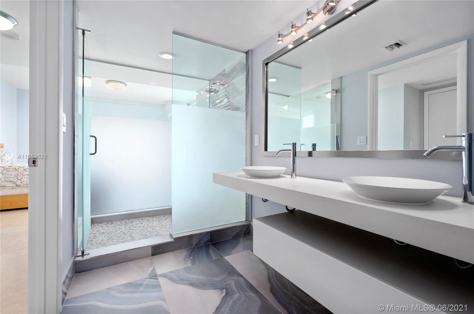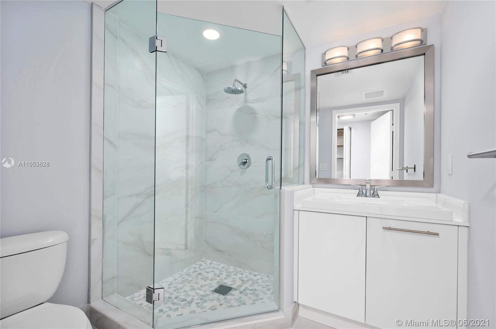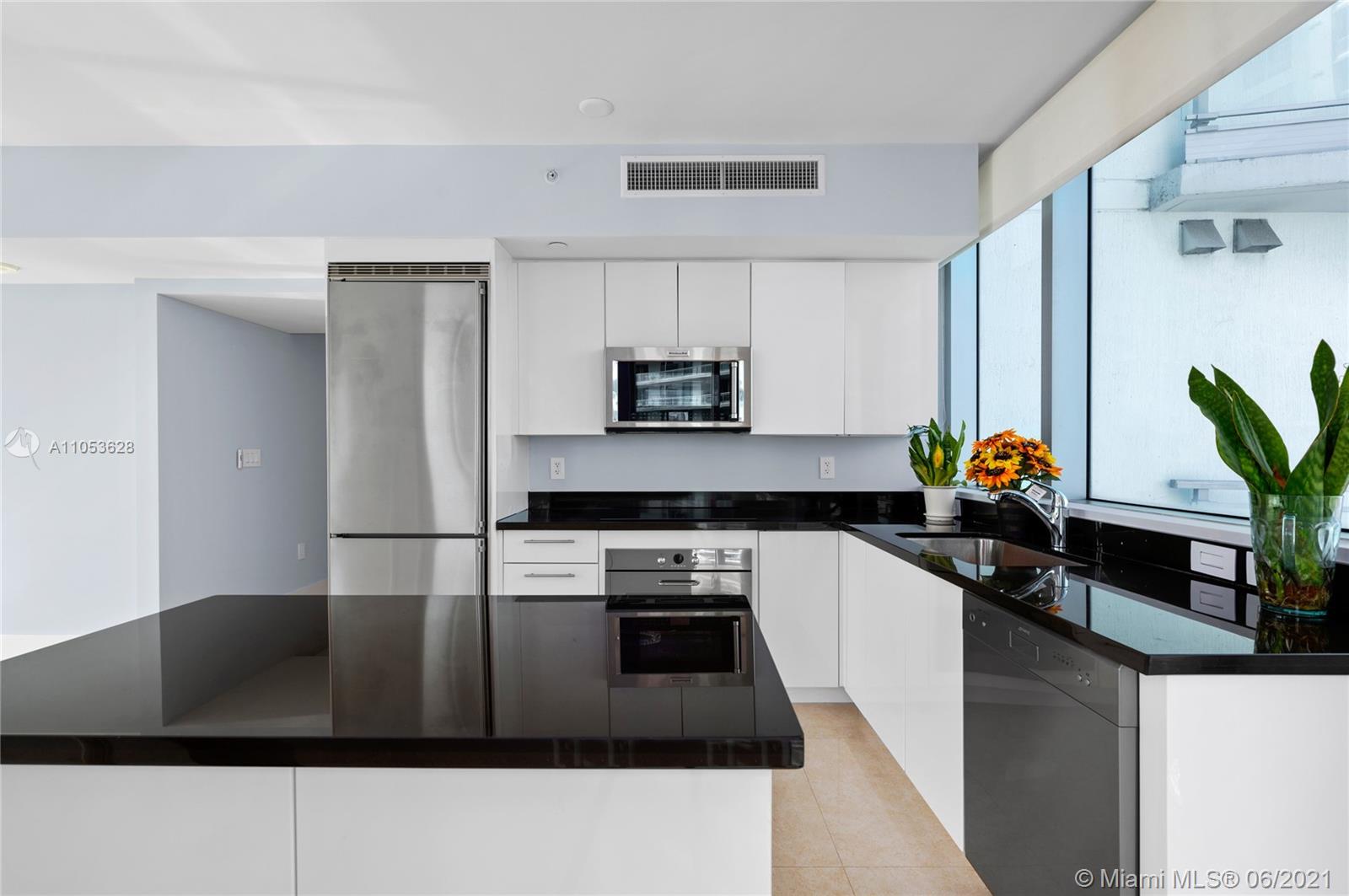 Completely updated luxury condo on desirable 10 line of the MINT condominium with 2 bedrooms, 2.5 baths on the 35th floor with great views of the Miami River, Biscayne Bay, Downtown Miami, and Brickell City Center. 24” x 24” tiles throughout the unit, including both balconies, stunning recently renovated baths, custom built-in closets, white screen shades in all windows, with full blackouts in the bedrooms, motorized shades, newly replaced cooktop, microwave and washer and dryer, modern lighting, and much more. Two balconies, gated community, with 5-star amenities. Ready to move in. Easy access to I-95, walk to Brickell City Center, Whole Foods and several high-end restaurants.