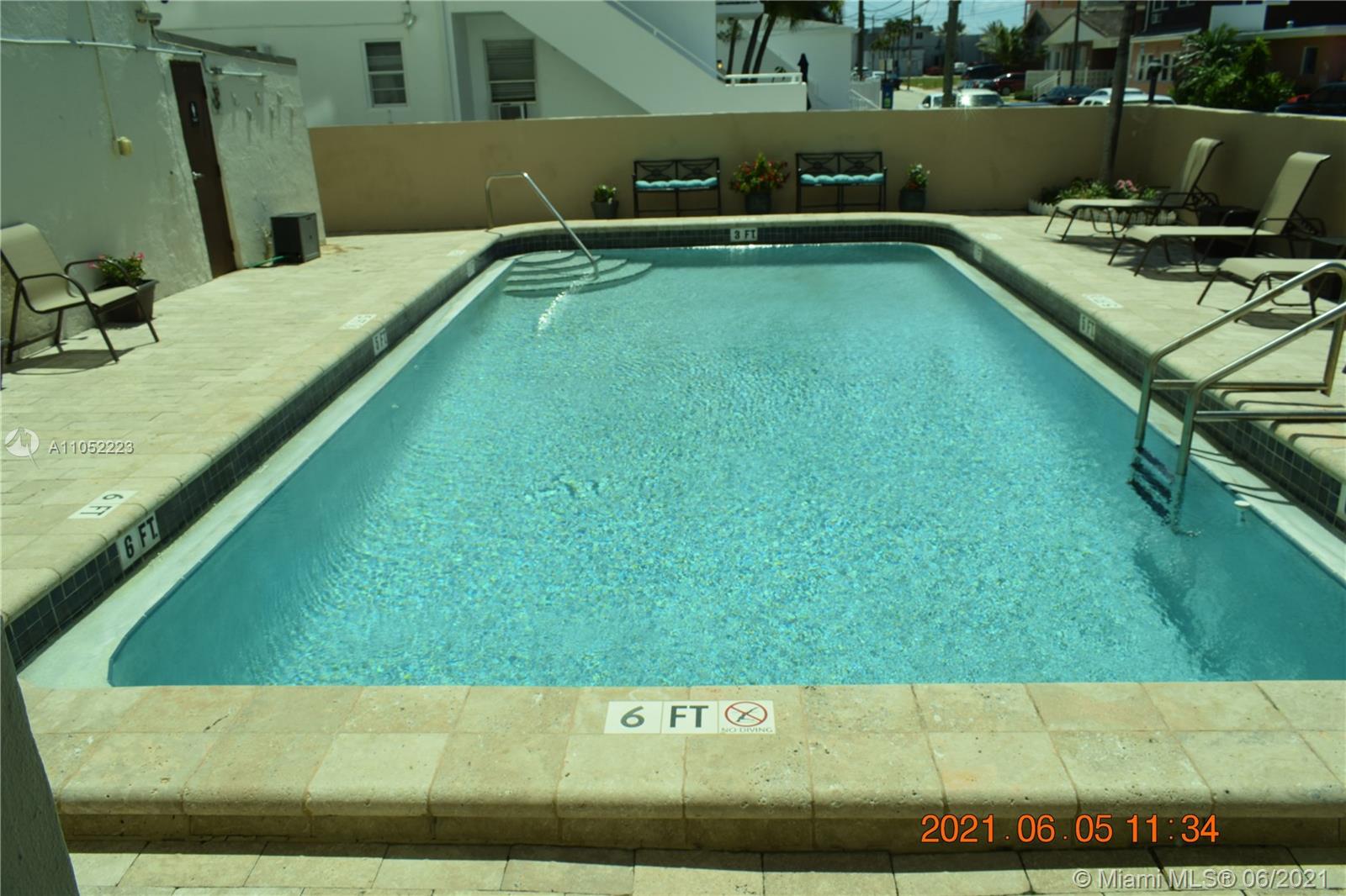 Lowest Monthly H.O.A. in Hollywood Beach $205 mo. See this Unit with Ocean Exposure before its gone. Partial view of the Beach with a Sea Breeze to boot. Relax after work walking to the Boardwalk for Dinner & Drinks every day. Enjoy the New Kitchen Cabinets & Counters, Also has Impact resistant windows and sliding glass doors. The building has a new State of the art Elevator,Security Cameras and soon to be installed Hallway Flooring and blacktop for the parking lot. This unit also has a 2 year old A/C and a tank-less water heater. This building has a complimentary Washer & Dryer right next door for your use and two storage spaces for your Beach items and chairs. Do not miss this one. Please use Showtime to schedule Appointment.