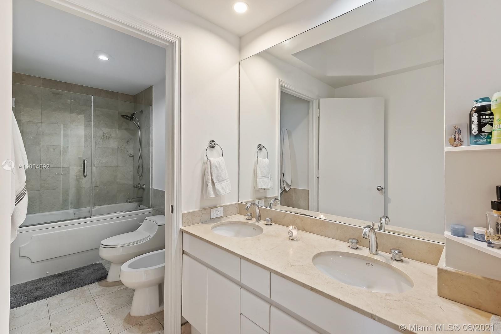 1 bed 1.5 baths condo in prestigious Two Tequesta Point building in Brickell Key Island. This high floor unit offers breathtaking bay, city skyline & island views. Large balcony, beautiful padded vinyl floors throughout, marble baths, California walk- in closet, open kitchen to living/dining room, brand new stainless steel appliances & granite countertops. Enjoy the dedicated barbecue area overlooking the bay & pool, two story bay front gym with basketball, squash & racquetball courts. Full service luxury building with 24 hrs concierge service and professional management. Brickell Key Island is a manicured community located only a short walk away from the Brickell Financial District, Brickell City Center & all area restaurants and entertainment venues.