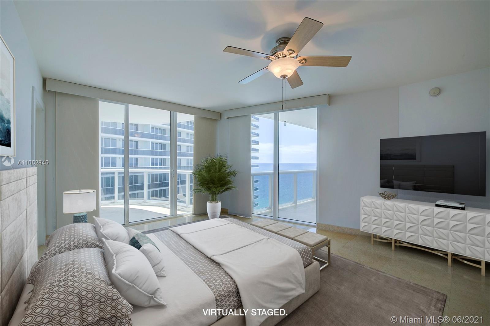 Rarely available spacious two bedroom two bath corner end unit with spectacular views of the ocean from the living areas and master bedroom. Perfect for gracious entertaining with 1,782 sq. ft. open layout. Delight in the breathtaking sunrises and sunsets from the expansive balconies (457 sq. ft.) Move-in ready, freshly painted, custom built in closet, marble flooring, Italian kitchen cabinetry & quartz countertops, laundry room. Two pets up to 25 pounds. Includes two assigned self-parking spaces & complementary valet for third vehicle. The Beach Club offers 5 star resort living with several heated pools, beach attendants, poolside cafe/bar, 50,000 sq. ft. fitness center, security, concierge and valet. Easy access to Aventura Mall, Gulfstream Park and the Shops at Bal Harbor.