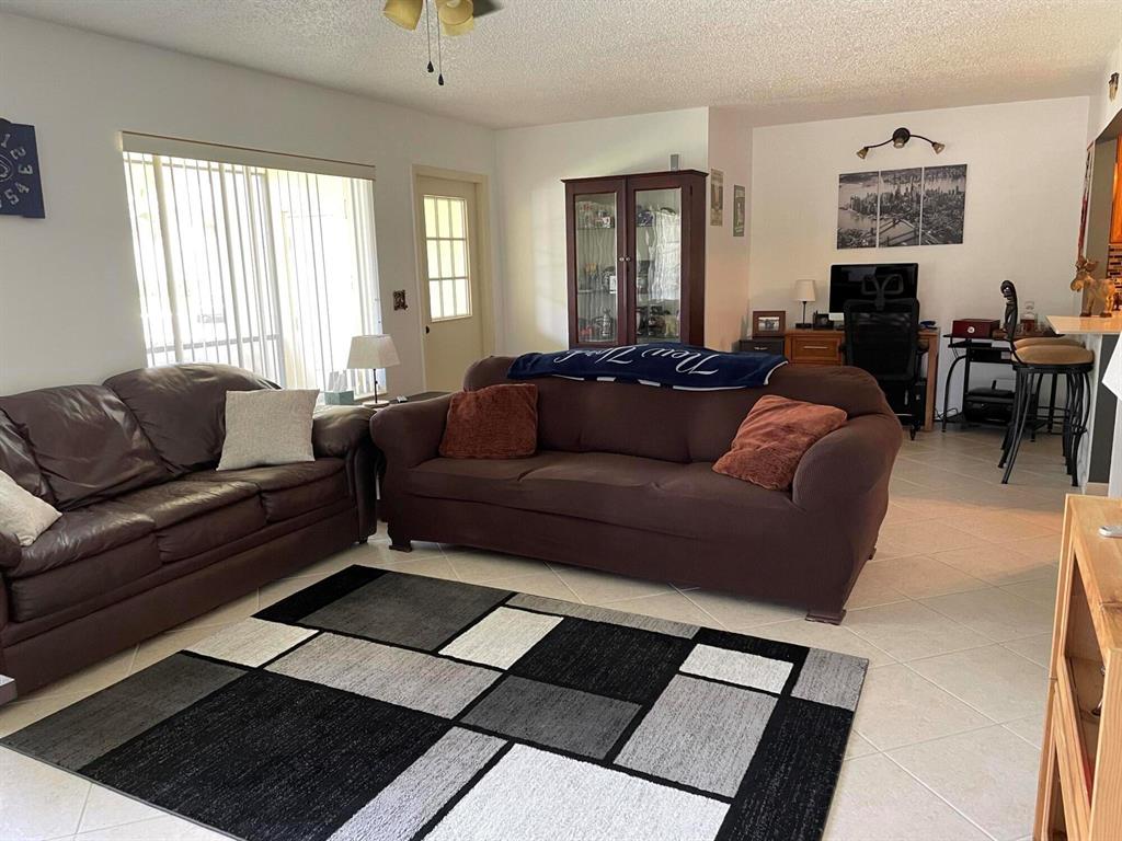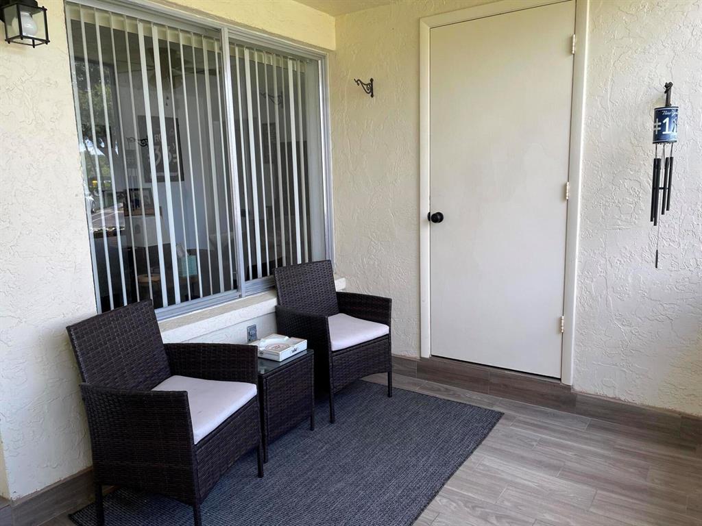 Large ground floor corner two bedroom, two full bath home. Laundry room off the updated kitchen with breakfast bar. Front porch is screened and comfortable. Windows galore make for a bright happy Florida home. Extremely well maintained. Ready to move-in. Roof is one year old. New instant hot water heater installed in June 2021.