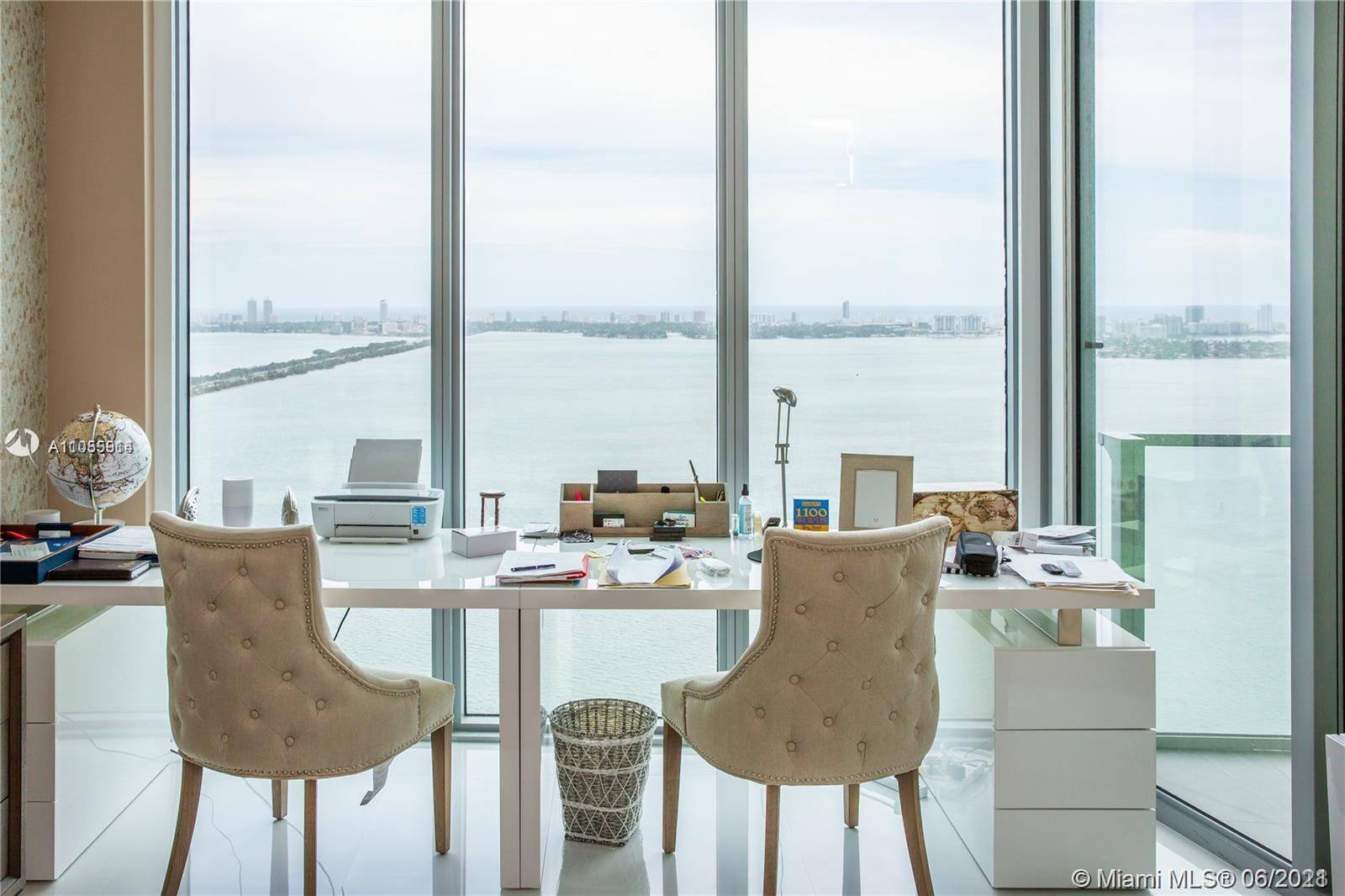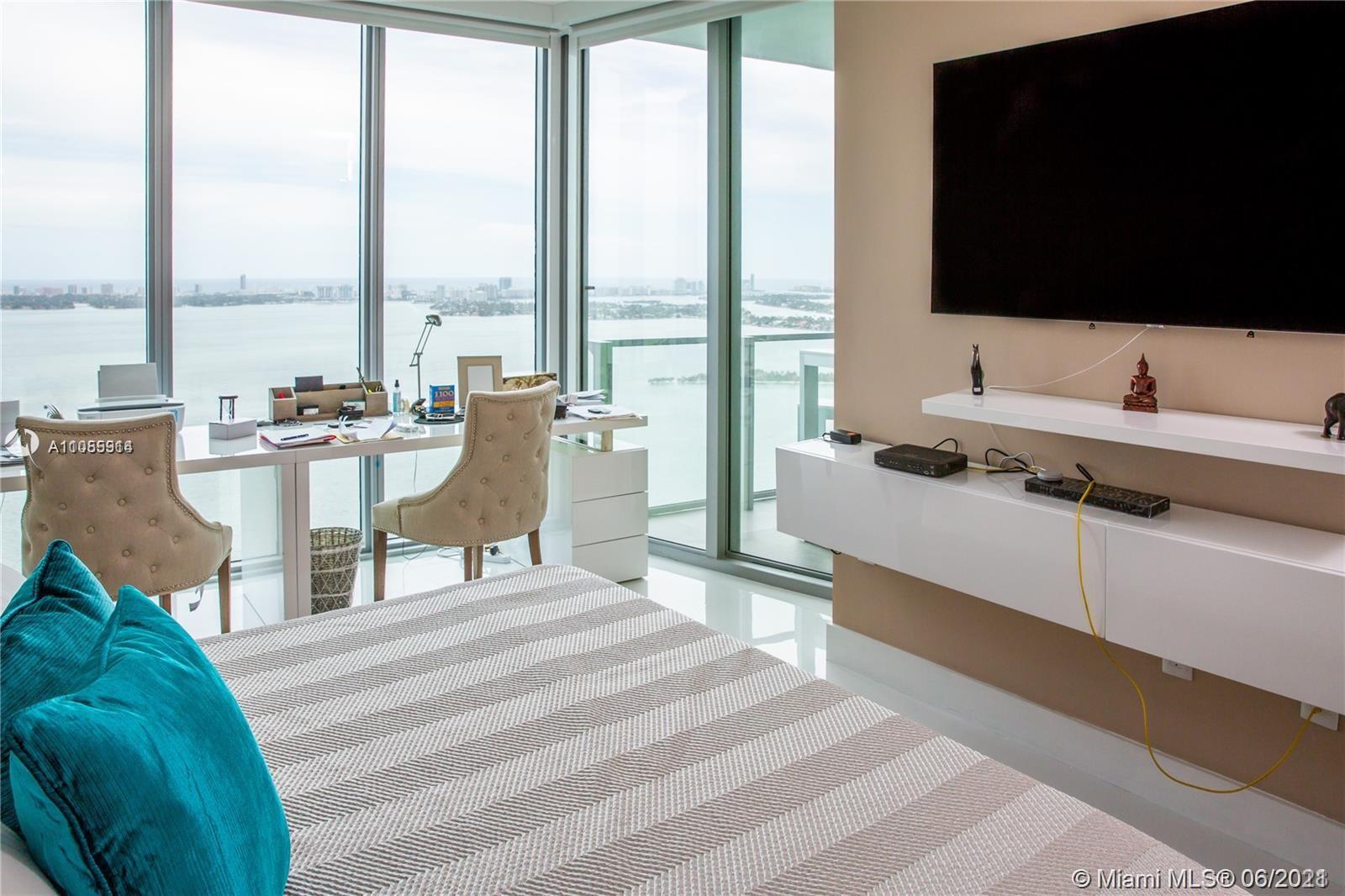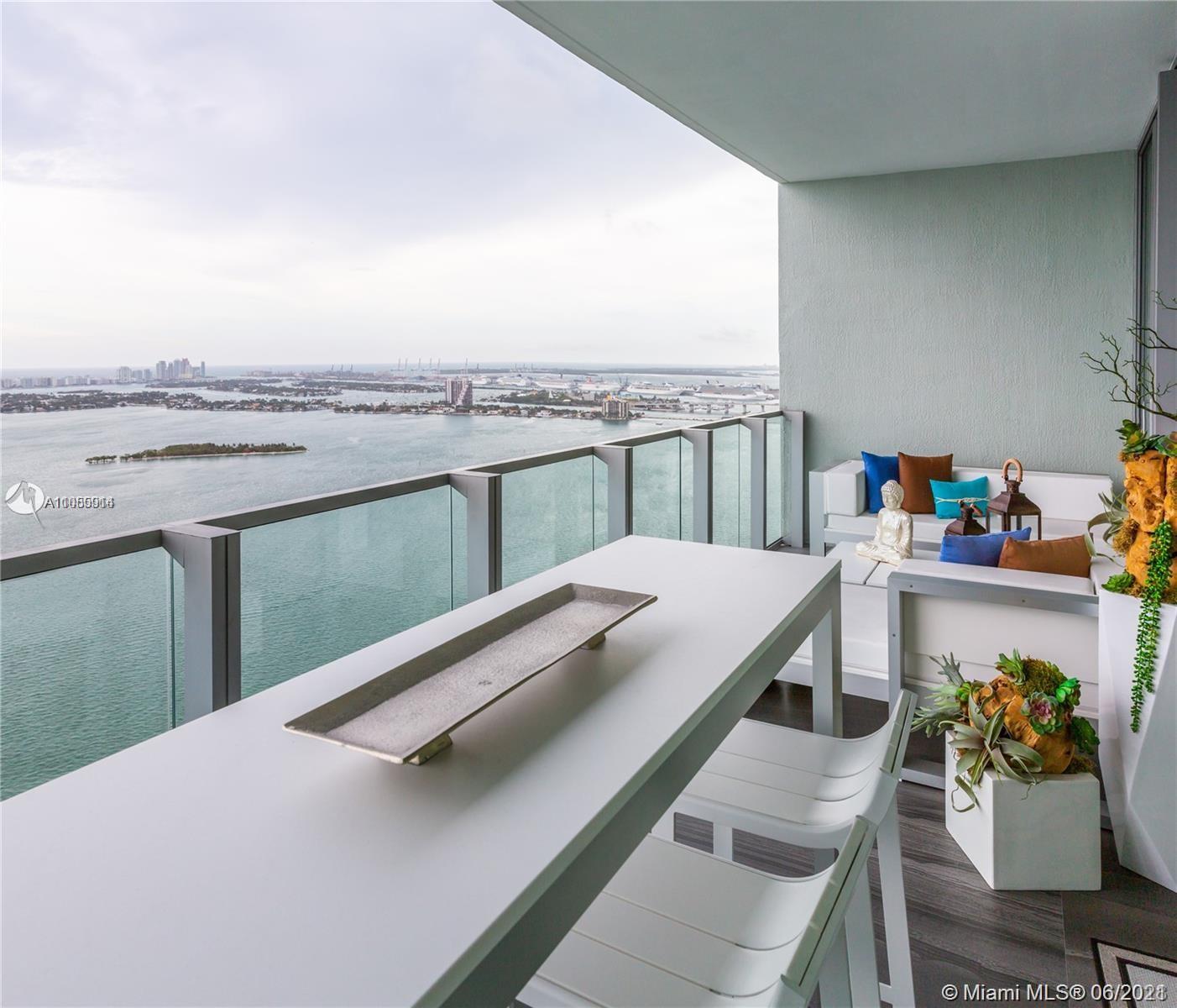 GORGEOUS HIGH FLOOR 2 Bedroom plus den, 3 baths with beautiful views of the Biscayne Bay, Miami Beach, and oceans views. Exquisite luxury finishes, top-of-the-line appliances, electric verticals in all windows, TWO parking spaces + Storage. Private Beach Club with beautiful Cabanas, Tennis & Volleyball courts, spa and gym, dog park, and two beautiful pools. You can't miss going to see it !! 24 HOURS NOTICE TO SHOW