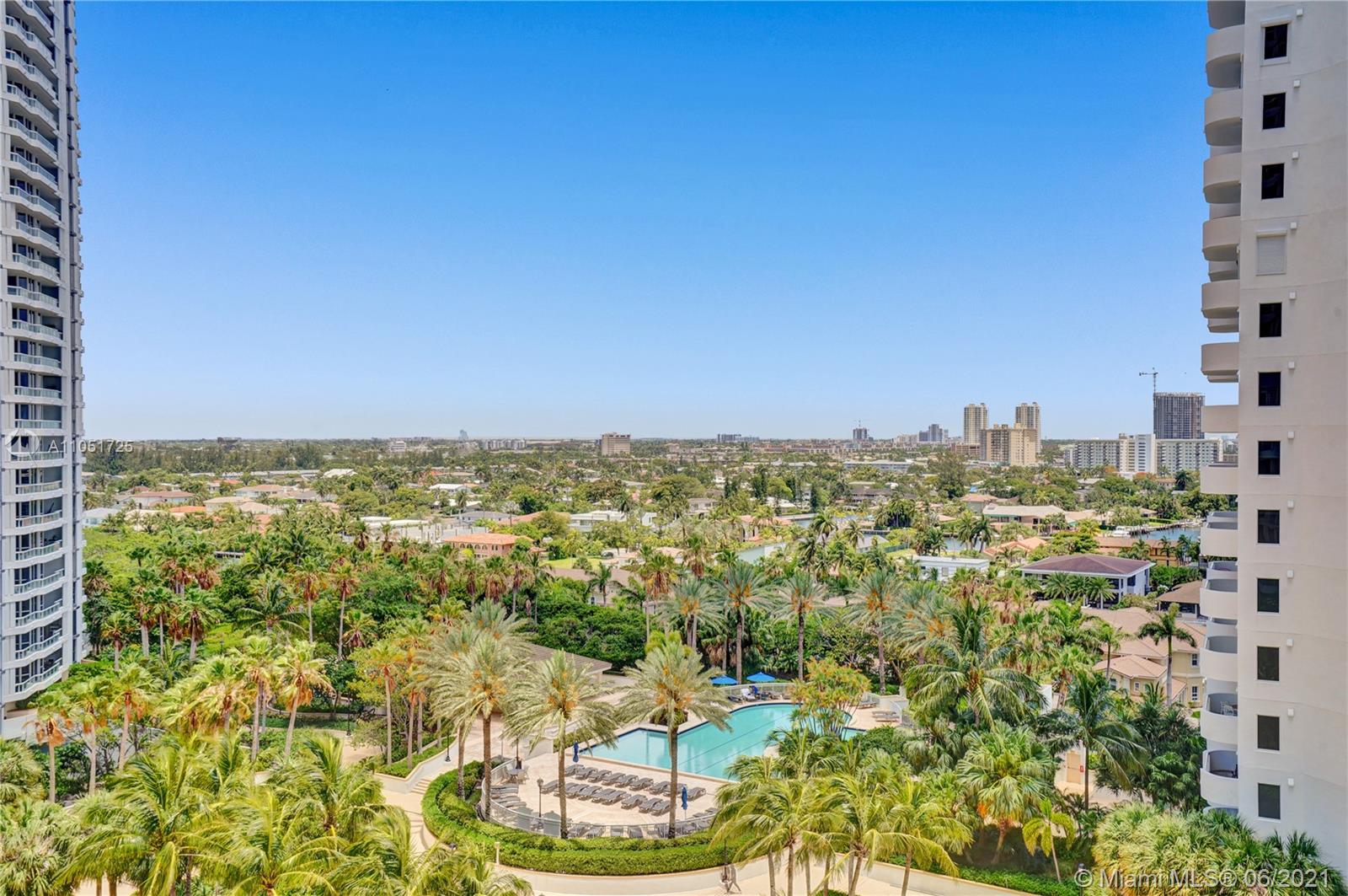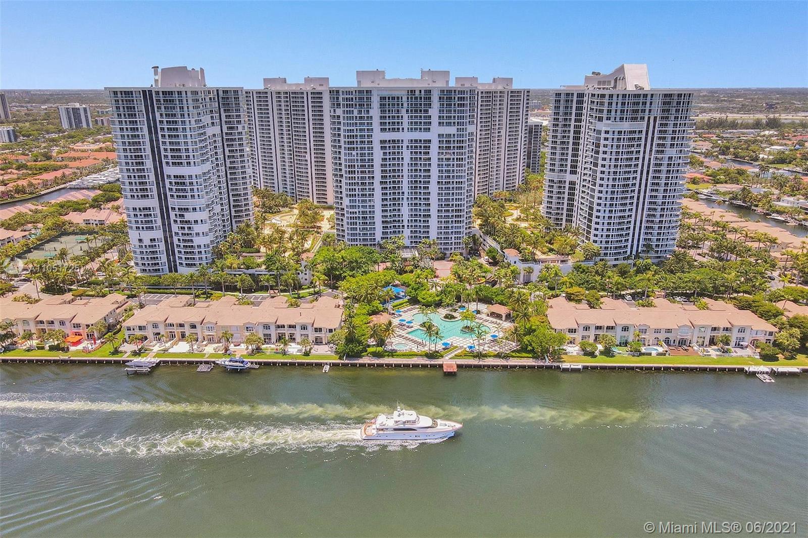 Bright and spacious corner unit in move-in condition. 3 bedrooms, 2.5 baths. Tile throughout, newer appliances, A/C and water heater. Motorized shades in all the windows, panoramic views. Open kitchen with breakfast area facing the marina of the Waterways. Spacious master bedroom, walk in closets. Elegant lobby has just been renovated by Steven G. Resort lifestyle: 3 pools, tennis courts, spa, fitness center and clubhouse. Outdoor café, BBQ area & kids playground. Walking distance to restaurants and shops. Call/text listing agent. Special assessments paid in full