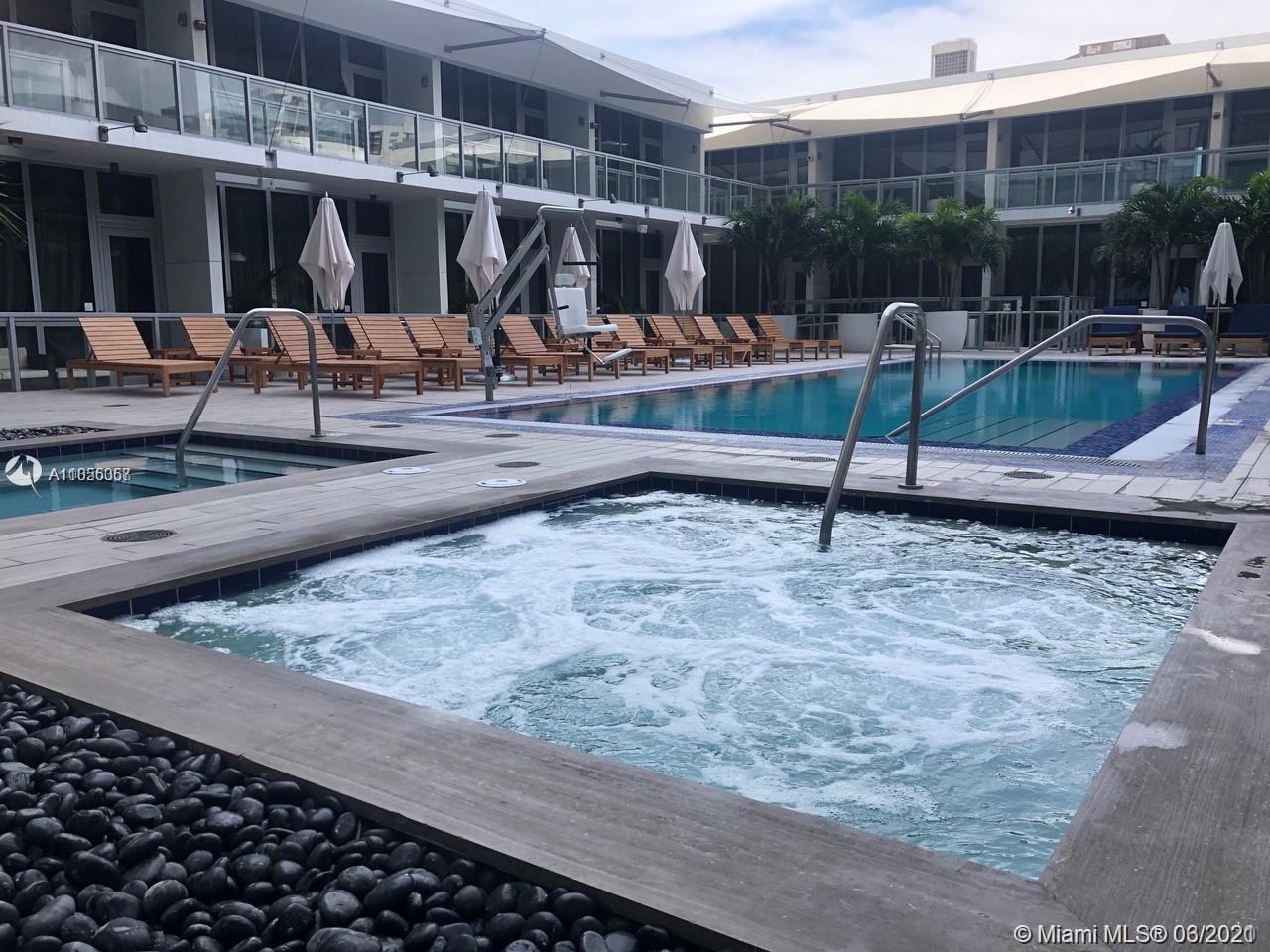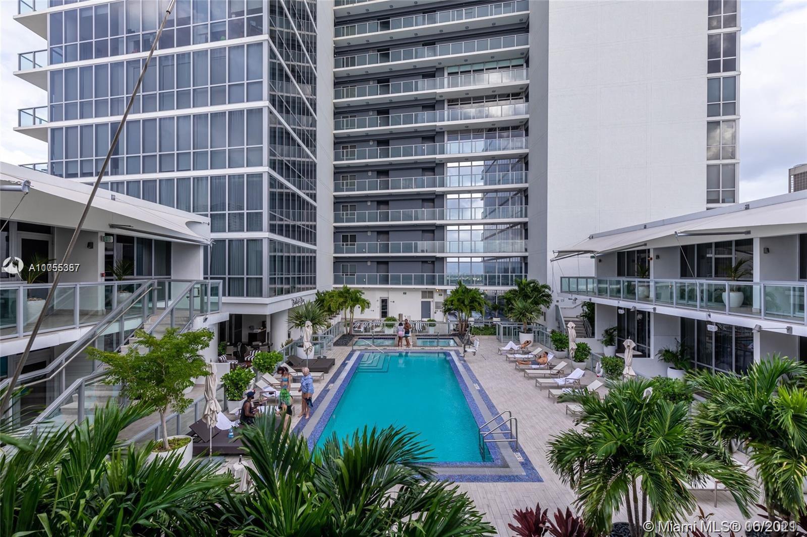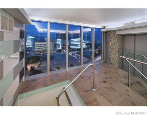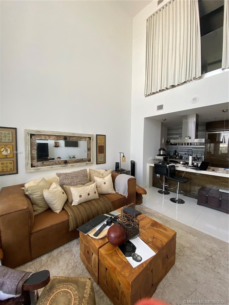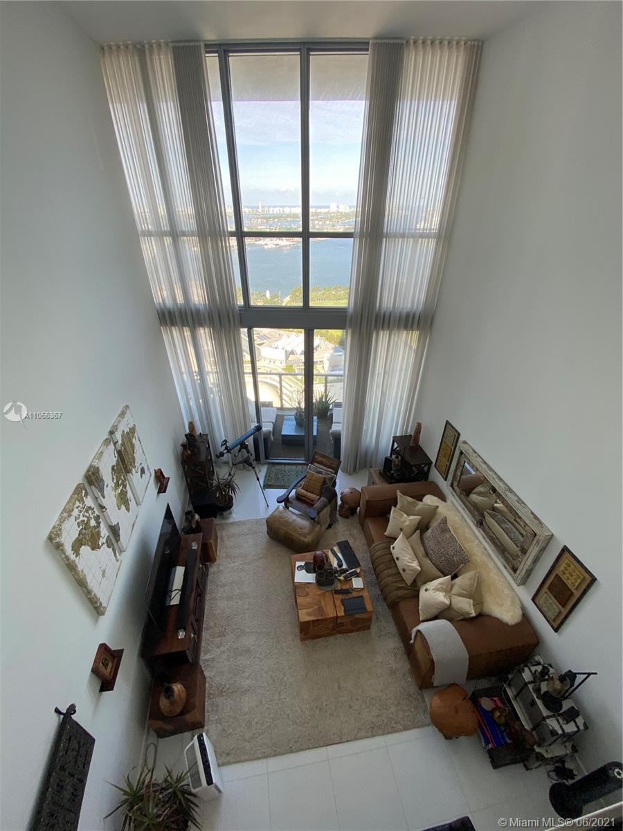 Modern 2-tory Loft style 1Bdr + Den | 2 Bath in luxury building. Den closed and used as an office. Unobstructed views of Biscayne Bay- Port of Miami. 20" high ceilings and oversized balcony. Railing was updated to Glass on 2nd floor & stairs. Top of the line appliances, 5 star amenities including Valet, 24hr doorman, lounge, Sky Pool Deck & Spa.