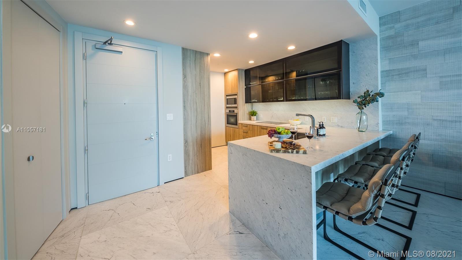 Very special and sophisticated 2 BD/2.5 BA with open water views has been customized beyond your expectations. Located on 51st floor and turnkey with a custom wine wall storage in den, tastefully upgraded with oversized 36" Italian Carrara floors, Pierro Lissoni designed Salvatori stone walls, Snaidero kitchen with Subzero & Miele appliances. New upgrades include a double vanity in the master bathroom, Creston Automated Smart Home System, Smart Lighting & A/C Control. The Epic is located at the epicenter of Brickell world-class shopping, dining and the best entertainment the city has to offer. The apartment is situated on the highly desirable '04' line with tall unobstructed water and skyline panoramas of Miami. Epic living means enjoying on-site first-class dining, SPA and amenities.