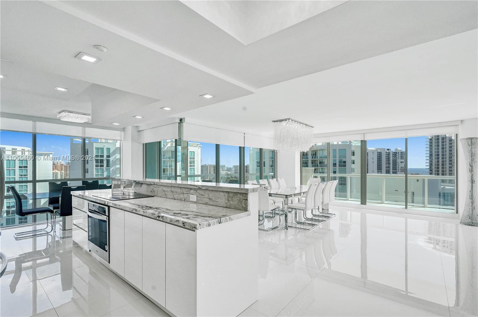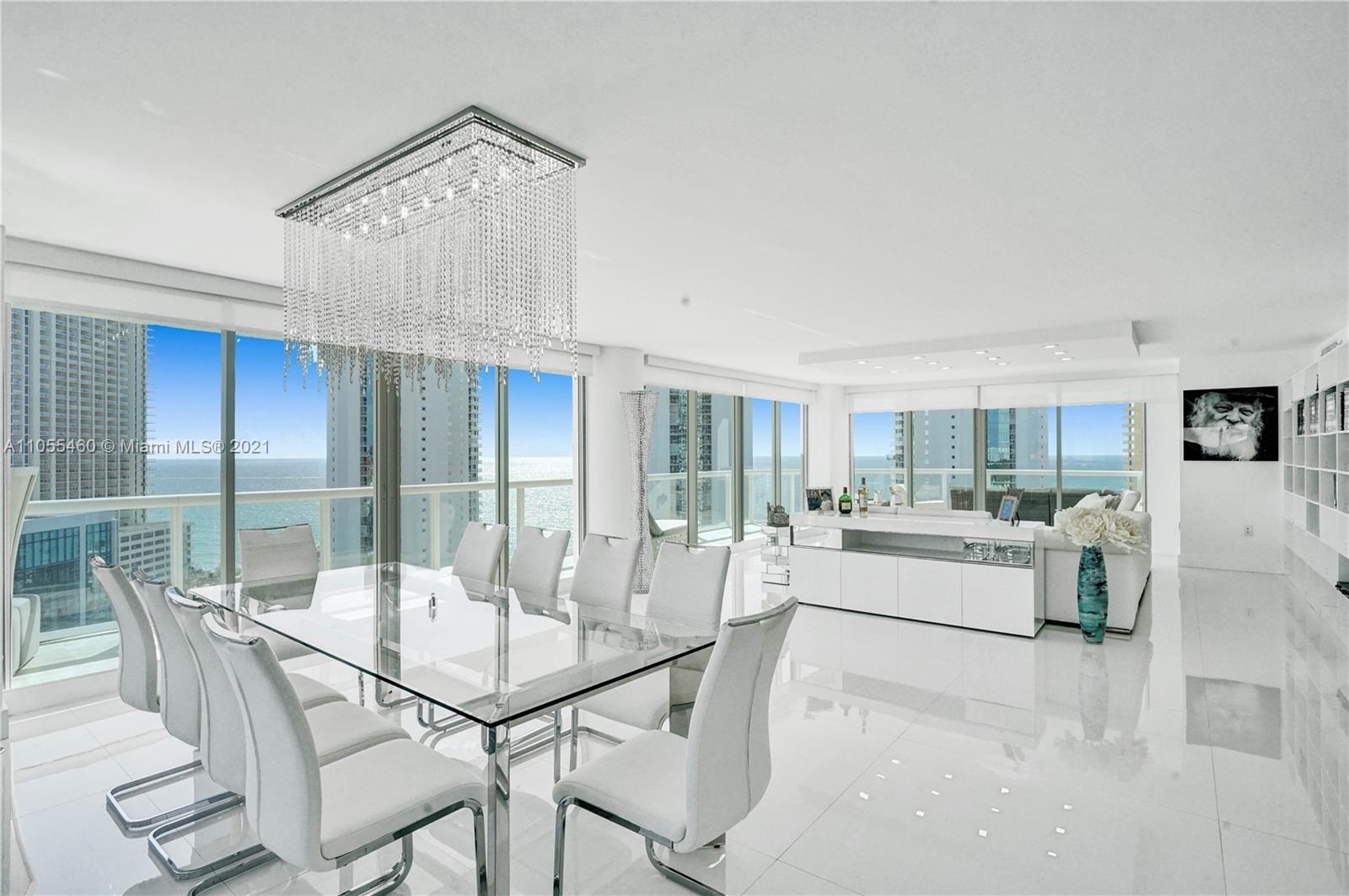 One of a kind, totally remodeled home with luxury finishes, offering breathtaking ocean & skyline views seen from within the unit. Located in Oceania IV, a 24 hr. gated & manned security. These 3 beds, 3 baths & 2,340 sq. ft. corner home features a very modern look, white porcelain tile, gorgeous open kitchen to the spacious dining & living room, beautifully remodeled bathrooms, floor-to-ceiling windows & glass sliding doors, lots of natural light, two terraces offering wonderful outdoor space, great for entertaining. Oceania, in the heart of Sunny Isles Beach, has five towers, Oceania Club & Spa, a full service private membership luxury resort beach club w/ beach service, beauty salon, 2 restaurants & a fitness center w/ daily classes, personal trainers, racquetball, basketball & tennis.