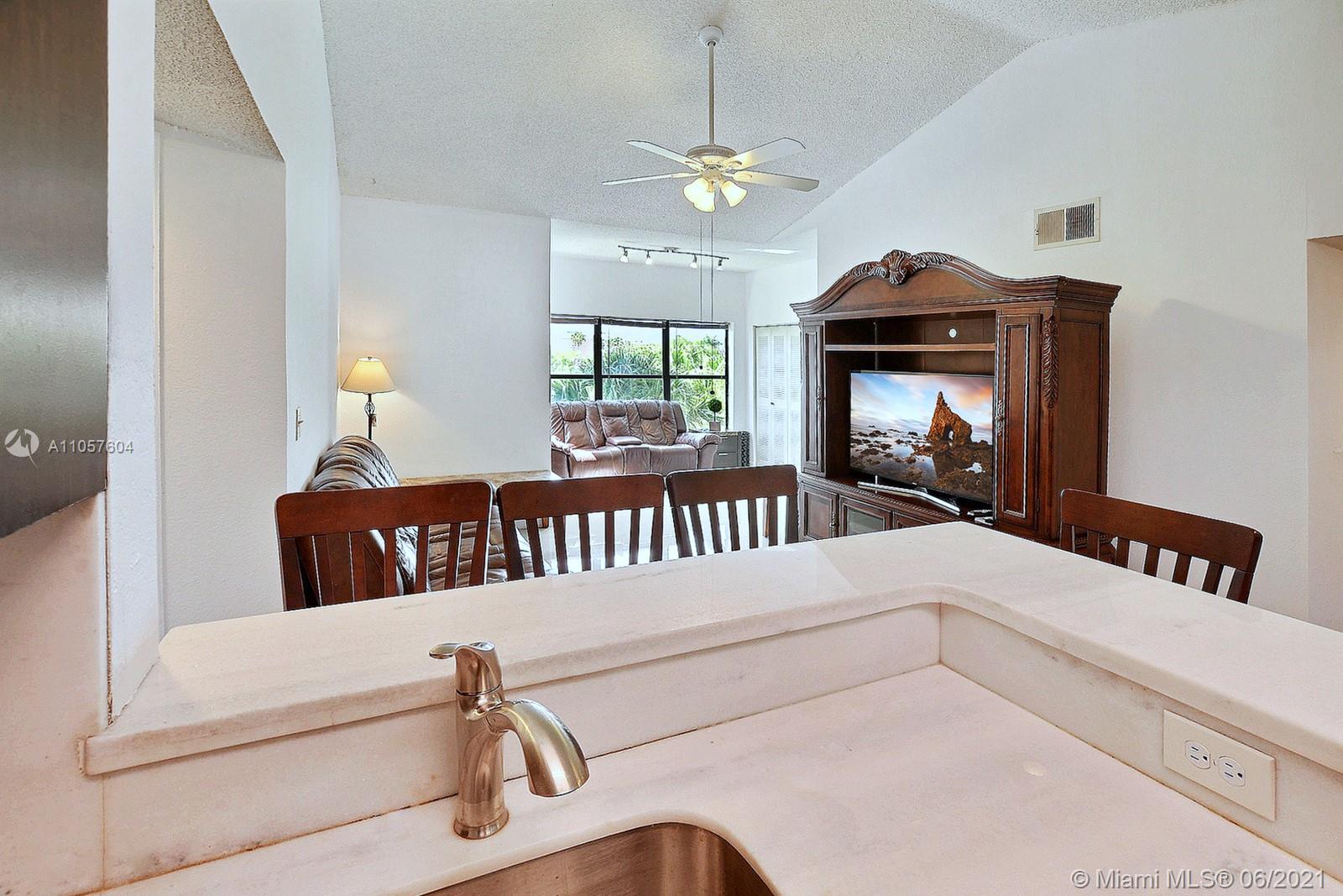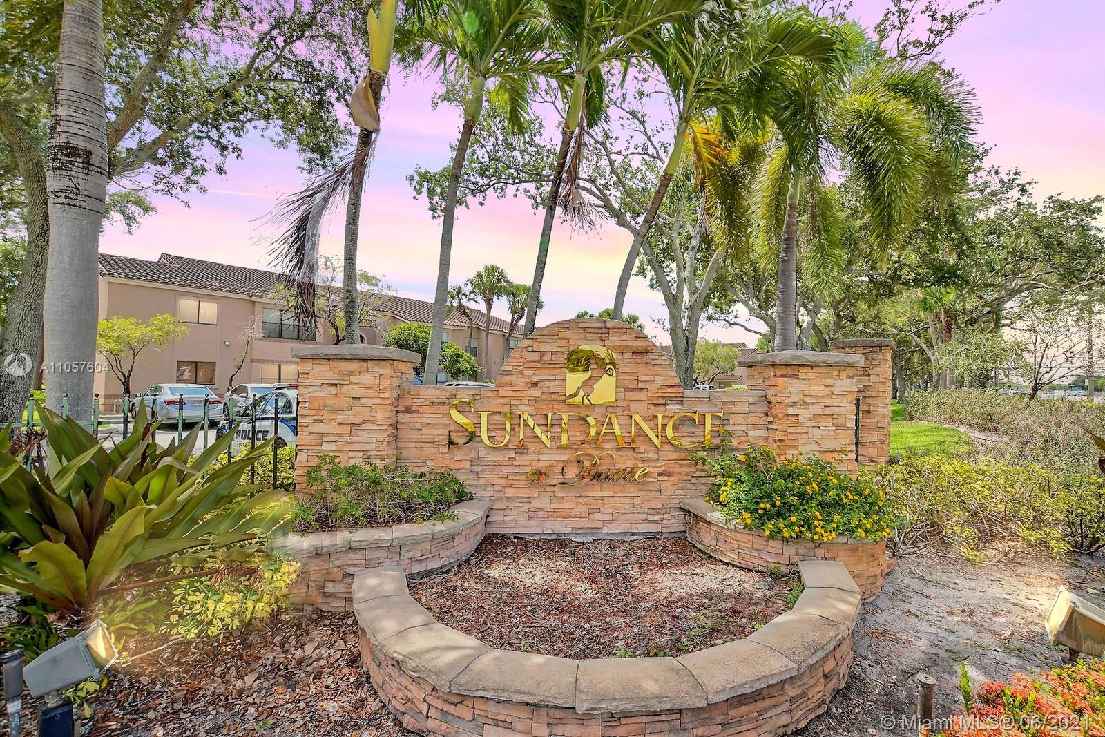 LOVELY WATER VIEW 2 BEDROOM 2 BATHROOM CONDO SITUATED IN THE CENTRALLY LOCATED COMMUNITY OF SUNDANCE IN DAVIE HAS SO MUCH TO OFFER. ENJOY OPEN CONCEPT LIVING FILLED WITH NATURAL SUNLIGHT AND ACCENTUATED BY VAULTED CEILINGS.STYLISH KITCHEN HAS CONTEMPORARY CABINETS, WHITE MARBLE COUNTERS AND OPENS TO THE DINING AREA & OVERLOOKS LIVING AREA,WITH A SERENE LAKE VIEW.SPACIOUS PRIMARY SUITE HAS UPDATED ENSUITE BATH COMPLETE WITH GORGEOUS VANITY AND STYLISH TEXTURED TILE. A/C IS EQUIPPED WITH A HIGH-TECH HALO AIR FLOW DEVICE WHICH REMOVES POLLUTANTS.BEDROOMS W/CABLE CONNECTIONS.FULL SIZE WASHER AND DRYER CONVENIENTLY LOCATED IN-UNIT. COMMUNITY OFFER A POOL, SPA, FITNESS CENTER, AND TENNIS COURTS. FABULOUS LOCATION. WALK/BIKE TO NSU, BROWARD COLLEGE, WHOLE FOODS, MINUTES TO I-595 AND RESTAURANTS.