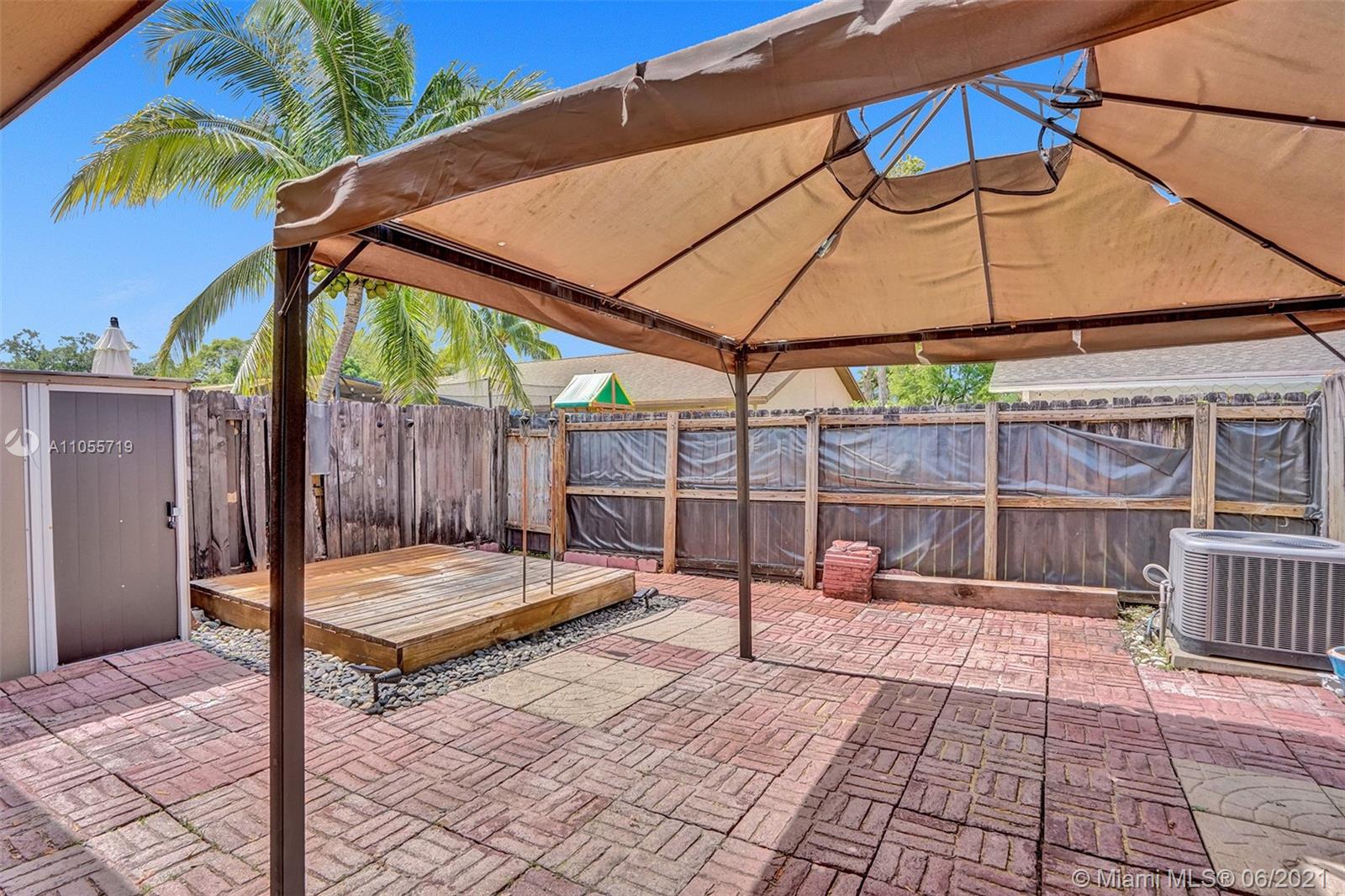 Remodeled 2/2 Villa in the heart of sought after Pembroke Pines. This home boasts an open floor plan with split bedrooms with many features & updates throughout including the updated kitchen cabinets & countertops, newer Air Conditioner, Newer Roof completed in 2017, Shutters for the front windows and impact sliding doors in the back overlooking the private fenced in large size yard area (with shed) ready for BBQ and entertaining. Home offers a unique loft feature creating a possible 3rd room, or home office. Both bedrooms have large walk-in closets and private bathroom access. Each owner is given 2 reserved parking spots within steps of your front door plus plenty of guest parking with low HOA fee. Located near great schools, restaurants, shopping and more.