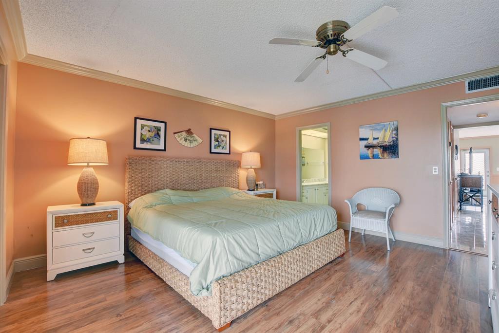 Lovely long water views! Beautifully updated and well maintained penthouse unit in luxury building. Pretty renovated kitchen with white cabinets, granite counters, high-hat lights, and tile floors. Crown molding. Neutral tile floors throughout living area. Gleaming wood floors in bedrooms. Enclosed lanai. Newer water heater and A/C with UV light. Sold AS IS and furnished with tasteful lightly used furniture.