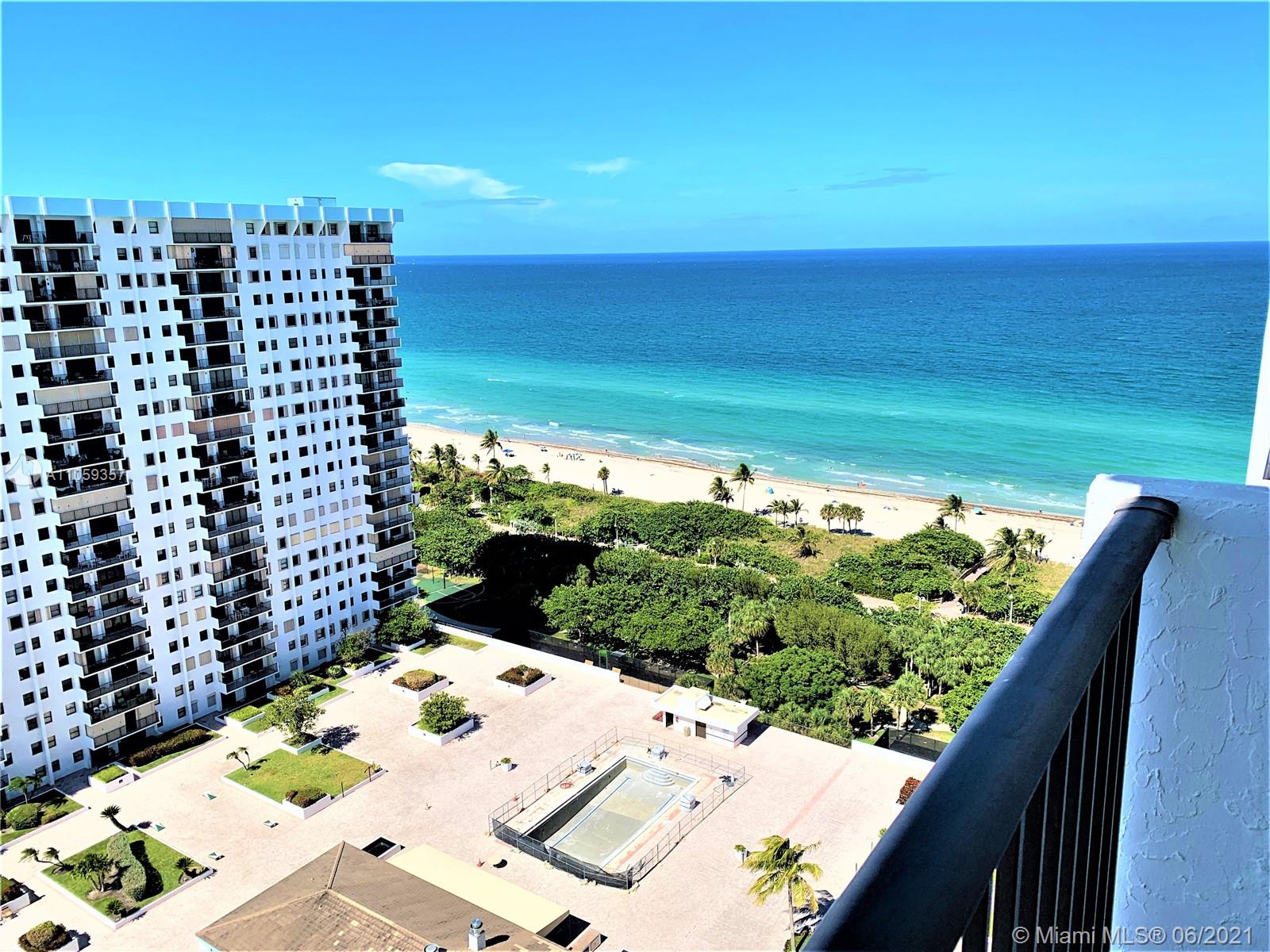 PRICELESS PANORAMAS VIEWS FROM THE 24TH FLOOR! LOCATED ON HOLLYWOOD BEACH, THIS CORNER TWO-BEDROOM, TWO-BATHROOM CONDO HAS BREATHTAKING OCEAN AND INTRACOSTAL VIEWS AND IS OVER 1600 SQ. FEET. THE MASTER BEDROOM HAS A HUGE WALK-IN CLOSET. PRIVATE TERRACE, LAUNDRY ROOM (WASHER/DRYER), AND EXTRA STORAGE SPACE IN THE BUILDING. DEEDED PARKING IN A SECURED GARAGE. AMENITIES INCLUDE 2 HEATED SWIMMING POOLS, 2 LIGHTED TENNIS COURTS, FITNESS ROOMS, CARD, POOL, AND GAME ROOMS PLUS A PRIVATE RESTAURANT. PREMIUM CABLE, WIFI - INTERNET, AND WATER INCLUDED IN MAINTENANCE. THE SUMMIT IS SITUATED ON THE HOLLYWOOD BROADWALK AND IS MINUTES TO RESTAURANTS & ENTERTAINMENT.