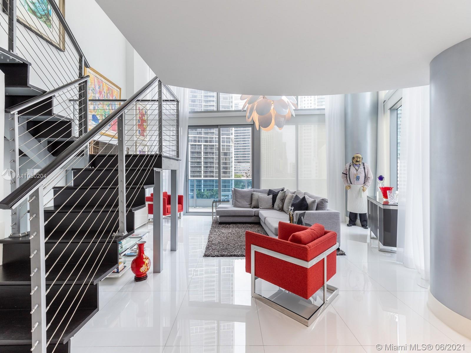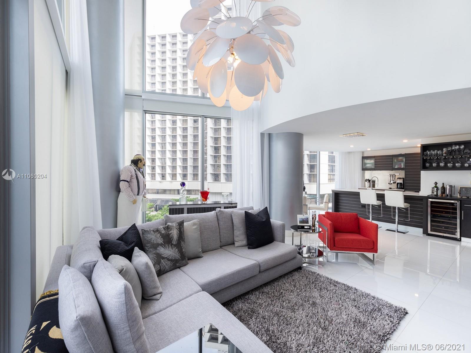 Rare opportunity to own a riverfront 3br/3baths two story corner residence at the EPIC. Double height floor to ceiling windows offer gorgeous Miami Brickell skyline and Miami River views. Spend the afternoon and evenings on the expanded balcony where you will enjoy daily sunsets and gaze as the boats go by! Two br/2baths upstairs and a 1br/1.5 baths downstairs, all en-suite baths. The modern kitchen is open to the dining area making it a great unit for entertaining. Furniture is negotiable for sale, making this a turnkey opportunity. The best restaurants, fine shopping, entertainment are all within walking distance, with Miami's beaches only 10 minutes away. The new Aston Martin Residences are next door, making this neighborhood a great place to call home!