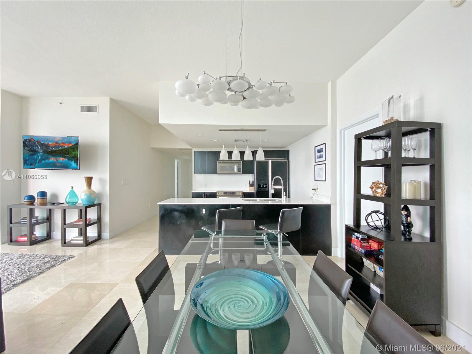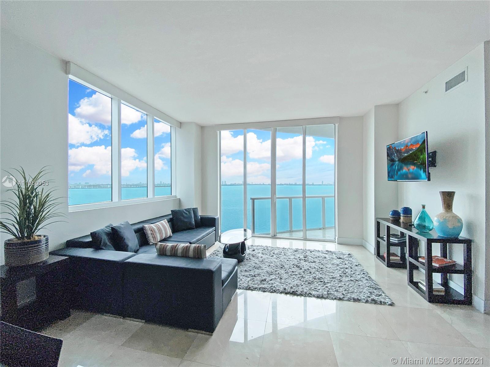 Welcome to Onyx on the Bay 506 a rare, high ceiling, luxury flow-through, 3 bedroom condominium perched over pristine Biscayne Bay. Its open layout features great room w/kitchen, 2 master suites, a 3rd bedroom, and 3.5 bathrooms with 3 separate split entries. High ceilings and floor-to-ceiling impact glass windows and doors open up to a 20 foot plus sunset balcony from one master bedroom and a sunrise balcony from the other master bedroom and the great room. Enjoy smartly designed amenities including- concierge; waterfront infinity edge pool; spa, sauna, steam, weight, yoga, and cardio rooms; 8th floor pet area with grills; party rooms; and kayaks. Includes storage, 2 parking spaces, and guest parking.