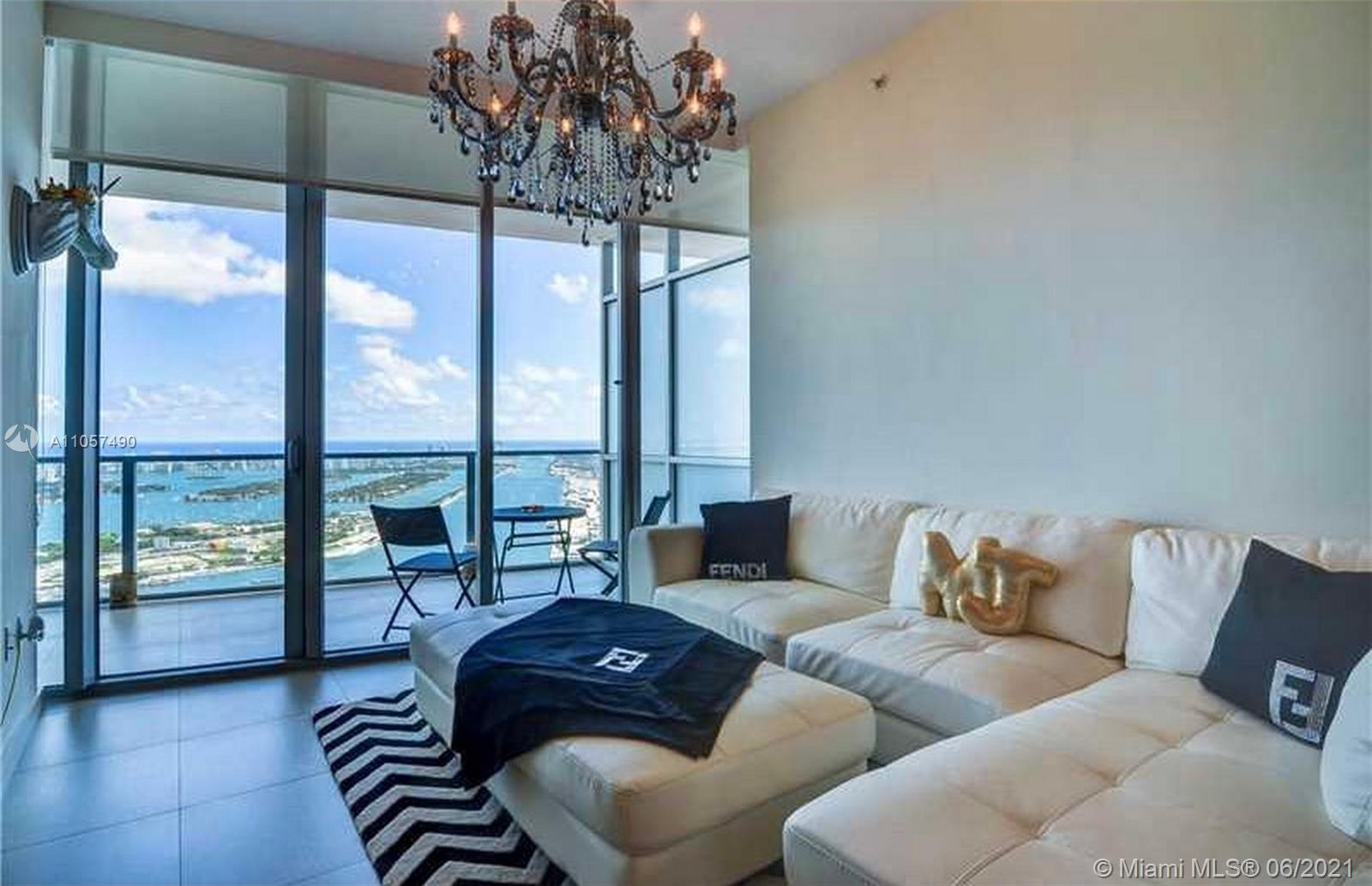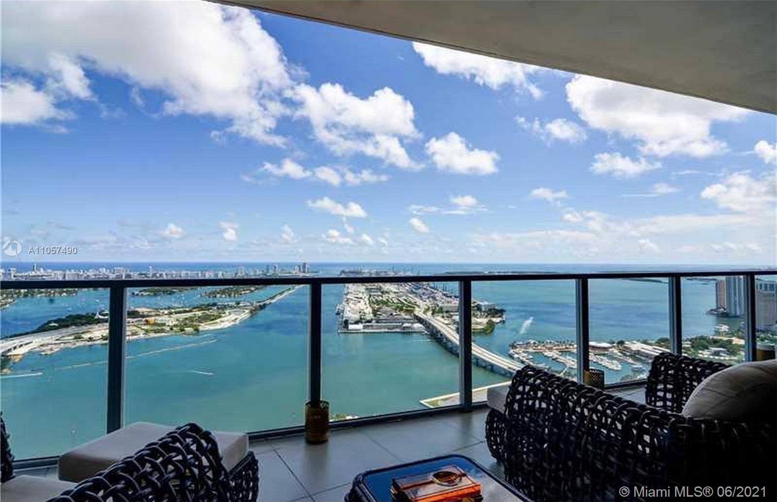 UNOBSTRUCTED STUNNING DIRECT VIEWS OF THE BAY FROM THIS SPECTACULAR 2 BED, 2.5 BATHS APARTMENT IN THE 60TH FLOOR. FULLY UPGRADED WITH PORCELAIN FLOORS, CUSTOM MADE CLOSETS, BLINDS. PRIVATE ELEVATOR. STATE OF THE ART KITCHEN WITH OVERSIZED VIKING APPLIANCES AND QUARTZ COUNTERTOPS. VERY LARGE BALCONY WITH GLASS RAIL. FULL SERVICE SPA. FITNESS CENTER, SAUNA STEAM ROOM. 2 HEATED POOLS. RESTAURANT & LOUNGE. 24 HR CONCIERGE AND SECURITY. A MUST SEE!!! VERY EASY TO SHOW!