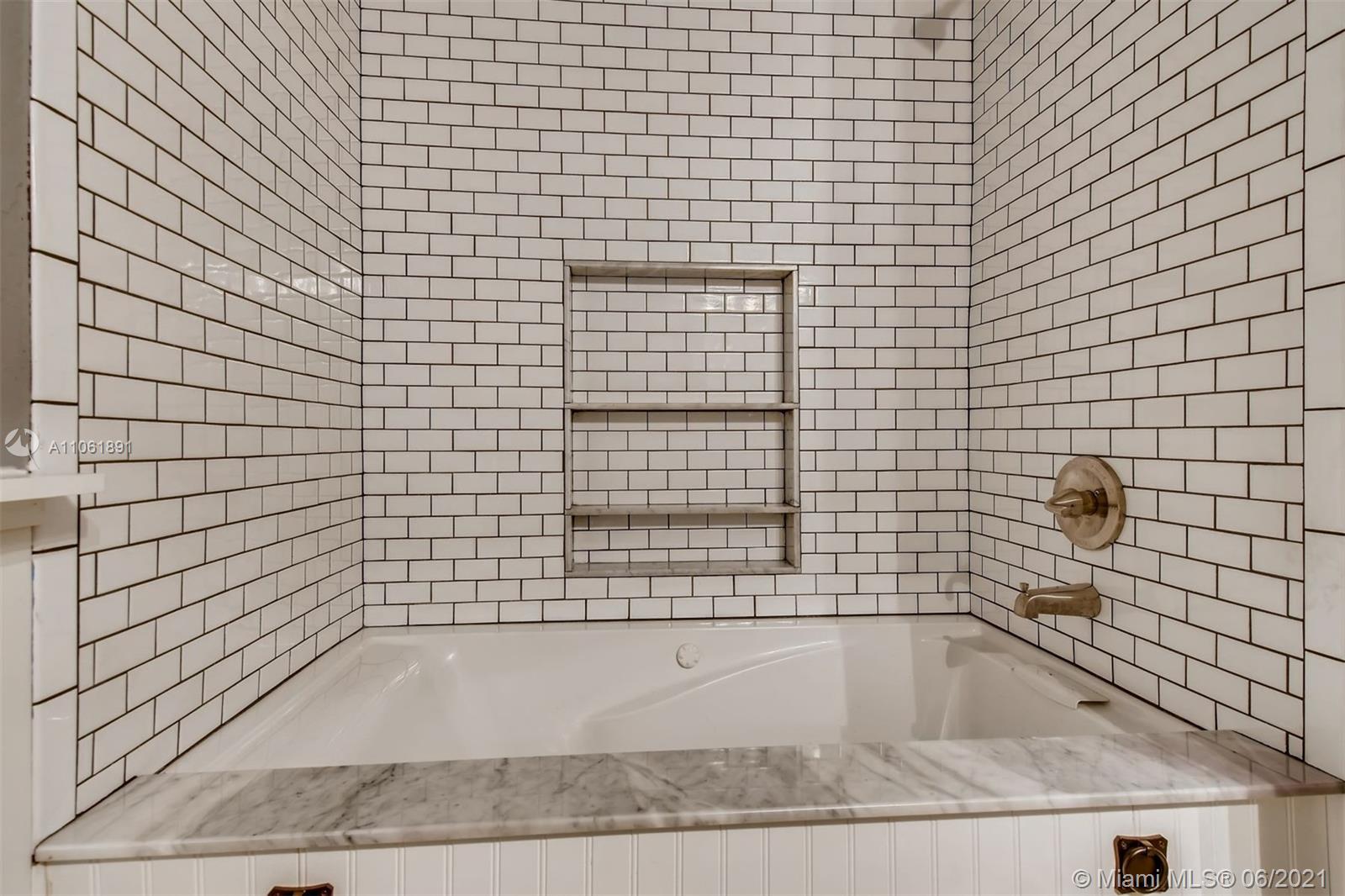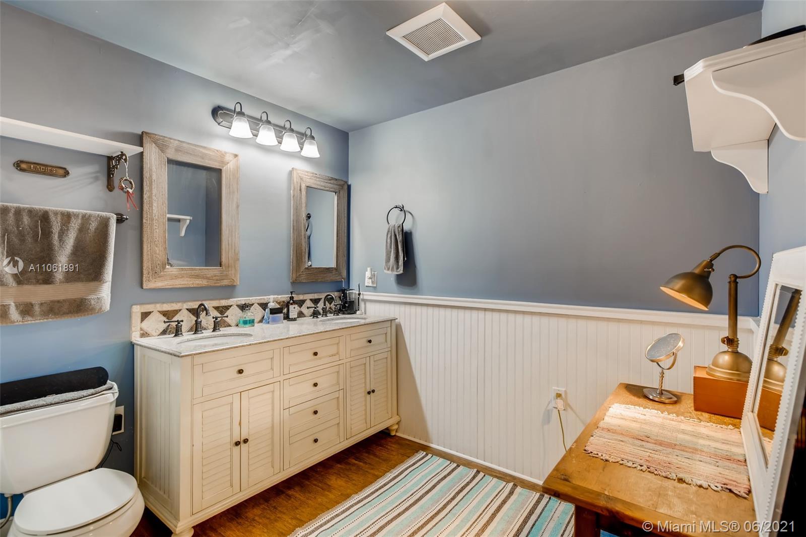 3 bd/ 2.5 ba. Upon entry, you are brought into the eat-in kitchen to your left, Equipped with granite countertops, stainless steel appliances and wood cabinets. Leaving the kitchen, you are brought down the hallway to the living area. The remodeled primary bedroom is located on the second level, completed by merging two existing rooms. There is a brick partial wall, walk-in closet with washer and dryer. Ensuite bathroom with tiled standing shower and dual sink vanity with granite counter. The remaining two bedrooms are airy with hardwood flooring. A second full bathroom on the 2nd level updated with a heated whirlpool tub and subway tile. Brick patio with privacy fence. Other features: New roof, newer Central A/C, forced air heating, two parking spaces, impact windows, plantation shutters