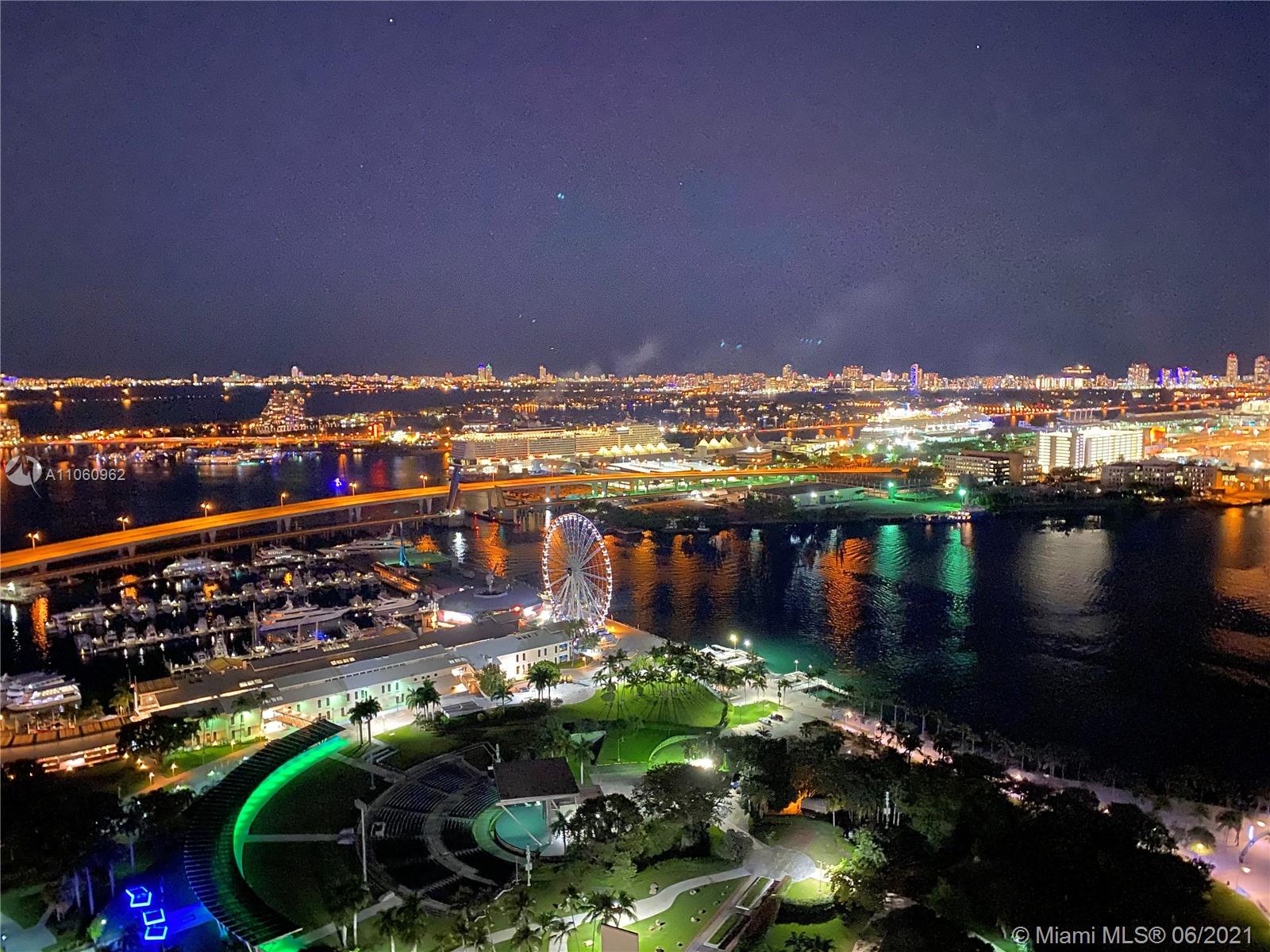 Best downtown location with water views for miles. High floor, east facing, 3 bed / 2 bath unit overlooks Bayside Market, Skyview Wheel, and magnificent Bayfront Park, a 32-acre green oasis by the bay! Whole Foods, AA Arena, Arsht Center, Perez Museum, Brickell City Centre, Metromover, and top restaurants are all less than a mile from your front door. Under 15 minutes to South Beach, Design District, Midtown, and airport. First-class amenities include lap pool, spa, gym, cabanas, and a massive outdoor sky lobby for you to enjoy the perfect Florida weather. Stainless appliances, washer/dryer in the unit, tile floors, ample closets, and modern bathrooms. The building offers concierge & valet. One assigned parking space. Pets ok! Priced to sell!