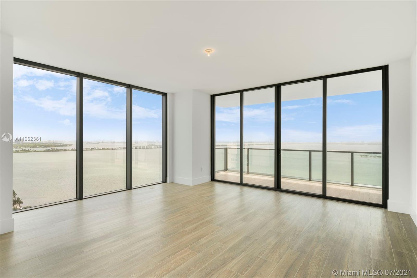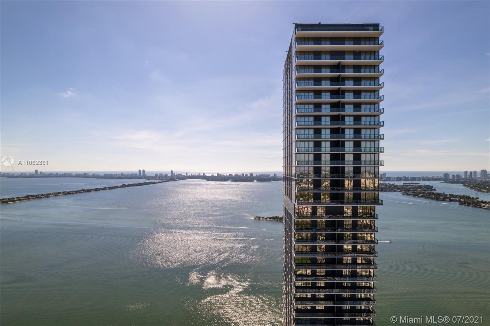 Edgewater’s most exclusive boutique development. 100 Residences with half and full floor flow-through units only! Direct open bayfront NE corner 3 BR + Den/Office with incredible views facing Miami Beach and city views of Edgewater and Wynwood. 10 ft. floor to ceiling glass windows, Wolf gas range and Subzero appliances, porcelain-wood flooring, & private elevator foyer. Lobby, 30th flr. owner’s Sky Lounge and residential common areas designed by renowned designer Jean-Louis Denoit. Other amenities include fitness center, spa, two pools, & five-star concierge services.
