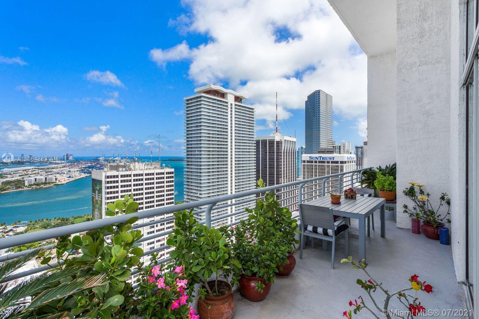 Spectacular views from this Lower PH 3501 Loft II unit- beautifully remodeled & sold FULLY furnished w/20 ft. ceilings, NE corner w/270 degree gorgeous bay & city views, deep extended terraces. Floor to ceiling impact windows w/black out blinds, Nest smart thermostat, European cabinetry, granite countertops, Stainless Steel appliances, glass backsplash, renovated bathrms with LED lighting, polished& sealed concrete flooring throughout. Extra Mezzanine floor adds a bedrm upstairs w/ bay views from the bed! Top of the line amenities: Rooftop Pool/Spa/Sauna/Gym on 36 floor w/360 degree views, Club rm with billiard and WiFi, additional lap pool at ground level, 24/7 Front desk security, onsite mgmt. Parking garage. Metro mover steps away, heart of dwntwn!**UNIT CAN BE SEEN COMMENCING 7/21/21**