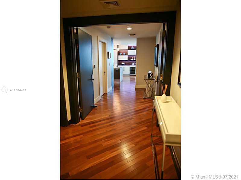 Immaculate 3/3/1 converted into a 2/3/1 to add a private dining experience that can be utilized as a 3rd bedroom if needed. Located on the best line in 900 Biscayne w/ unobstructed Biscayne Bay, Sobe Skyline & City views. Unit features spectacular upgrades including Brazilian Teak Hardwood floors, custom closets, great sized pantry & laundry cabinetry. Custom built-in bar & office desk with LED lighting, wine cooler & polished concrete countertop. Laminated Carrera marble kitchen countertop to protect from damage. Roller shades throughout as well as Blackouts in each of the bedrooms. This unit also comes equipped with its own Private Elevator & Foyer area upon entering. Enjoy top of the line gym, spa, free spinning classes, private Theatre, resident lounge w Wifi, & children's play area!
